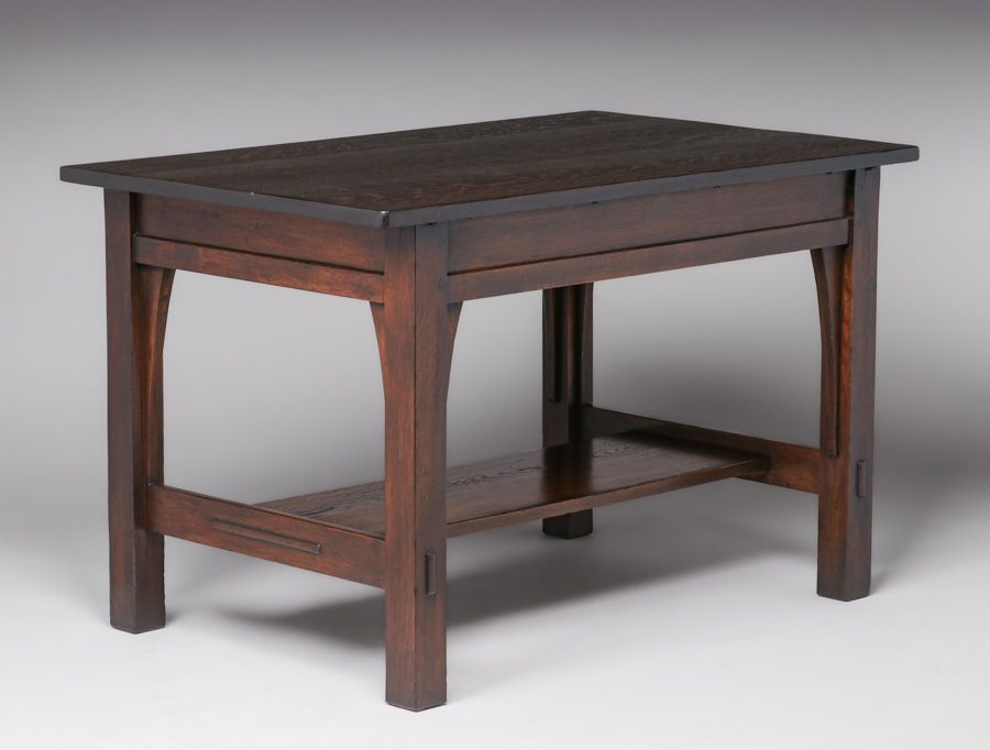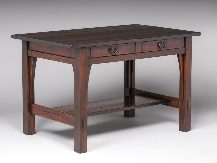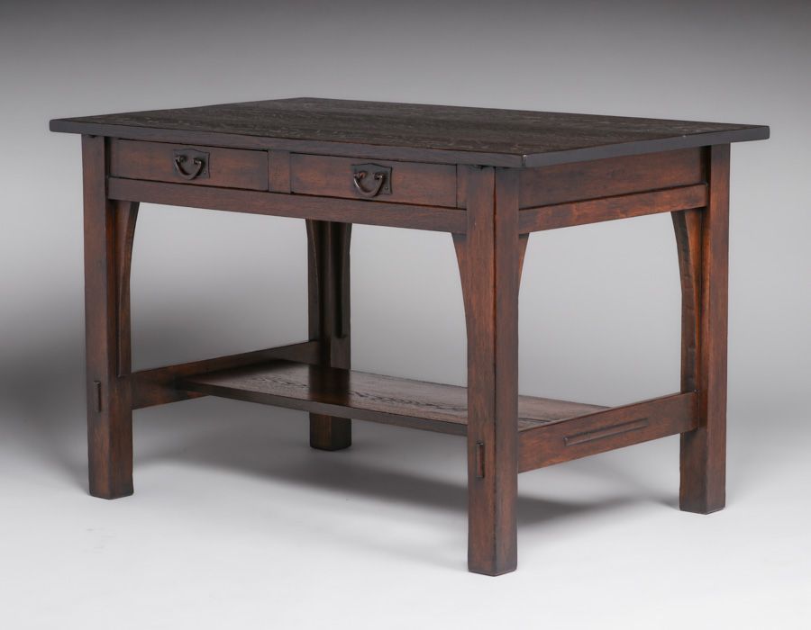 Gustav Stickley Two-Drawer Library Table c1910. Unsigned. Very nicely refinished. 48"w x 30"d x 30"h SOLD