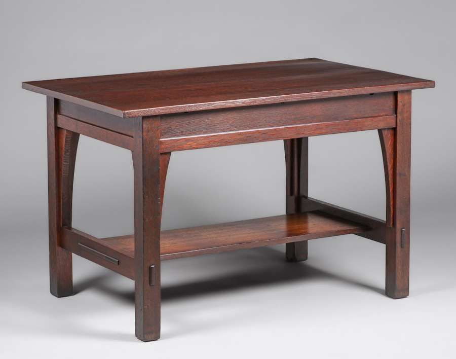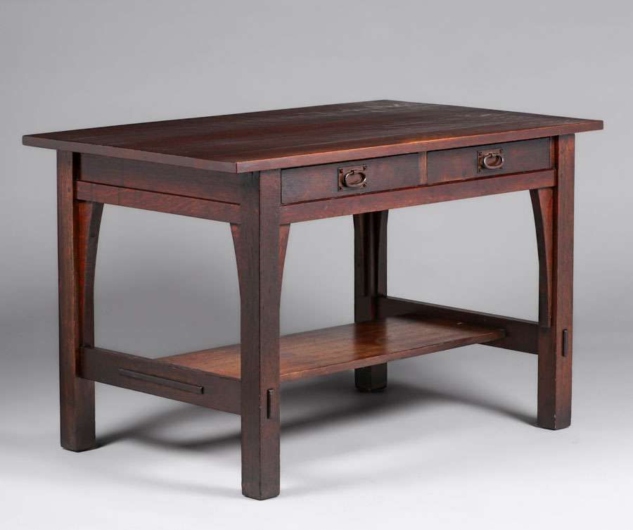 Gustav Stickley Two-Drawer Library Table c1912. Signed. Top perfectly refinished to match excellent original finish. 48"w x 29.5"d x 30"h SOLD