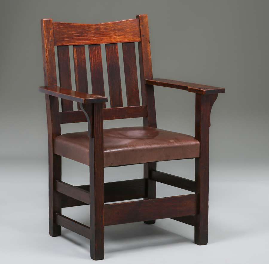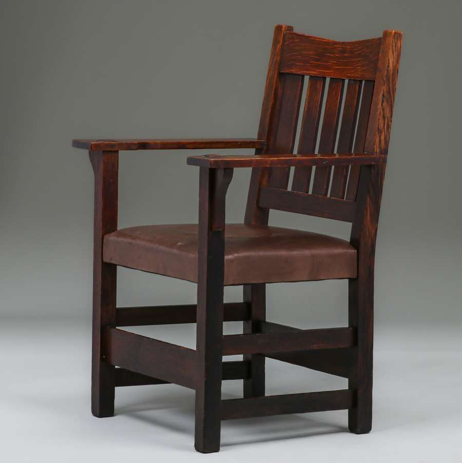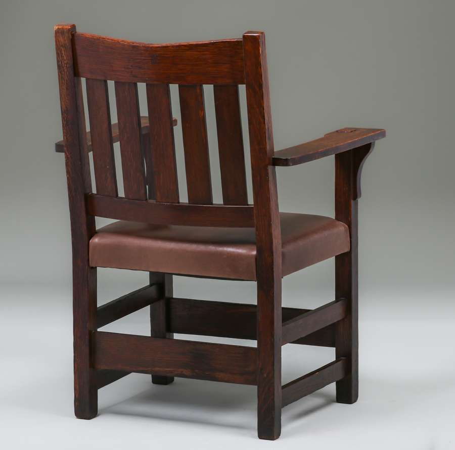 Gustav Stickley V-Back Armchair c1910. Signed. Excellent original finish. Rock solid sturdy. 37"h x 26"w x 19"d SOLD