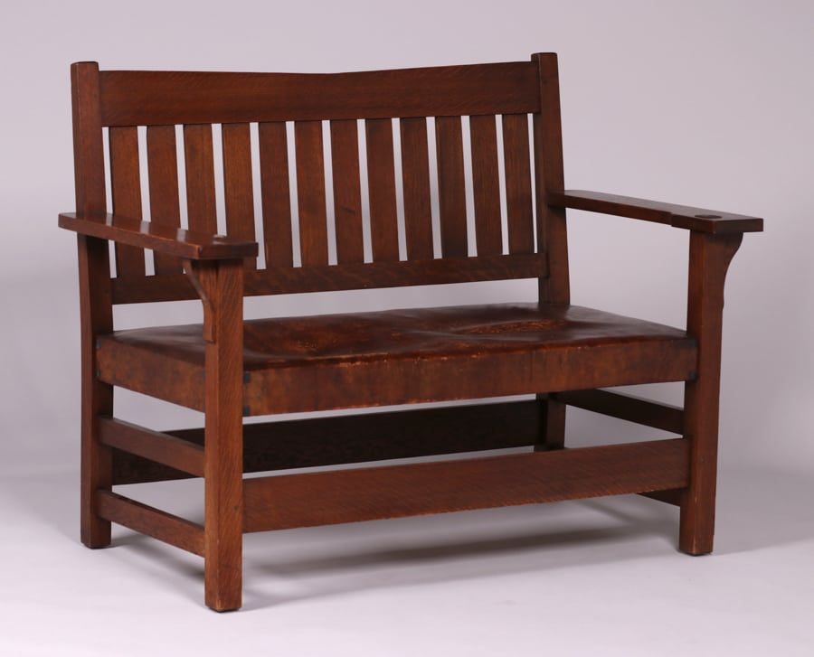 - Gustav Stickley V-Back Bench