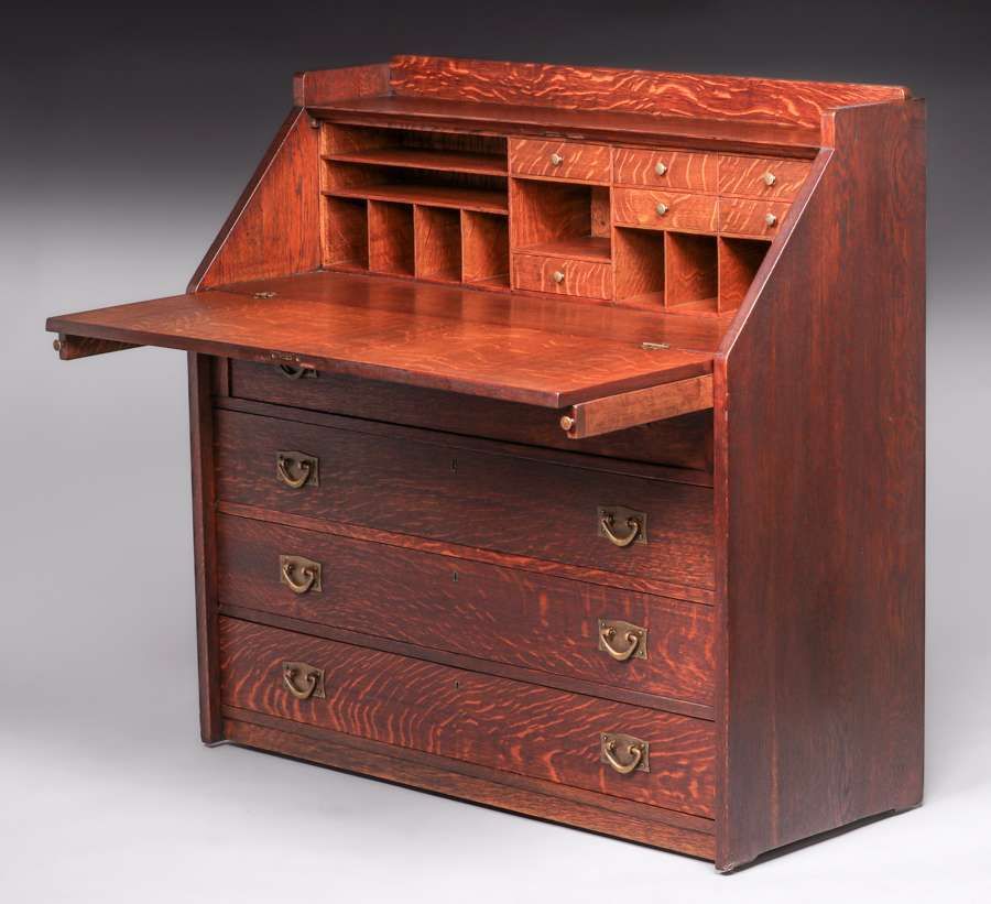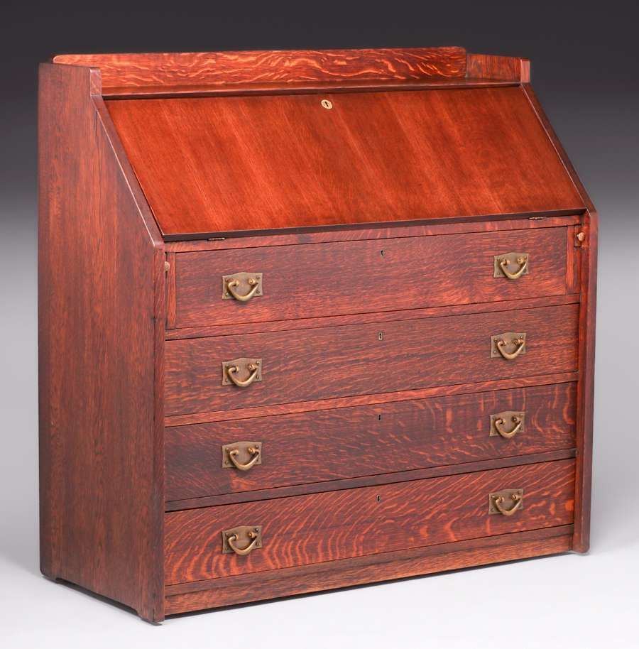- Large Gustav Stickley Four-Drawer Dropfront Desk c1912