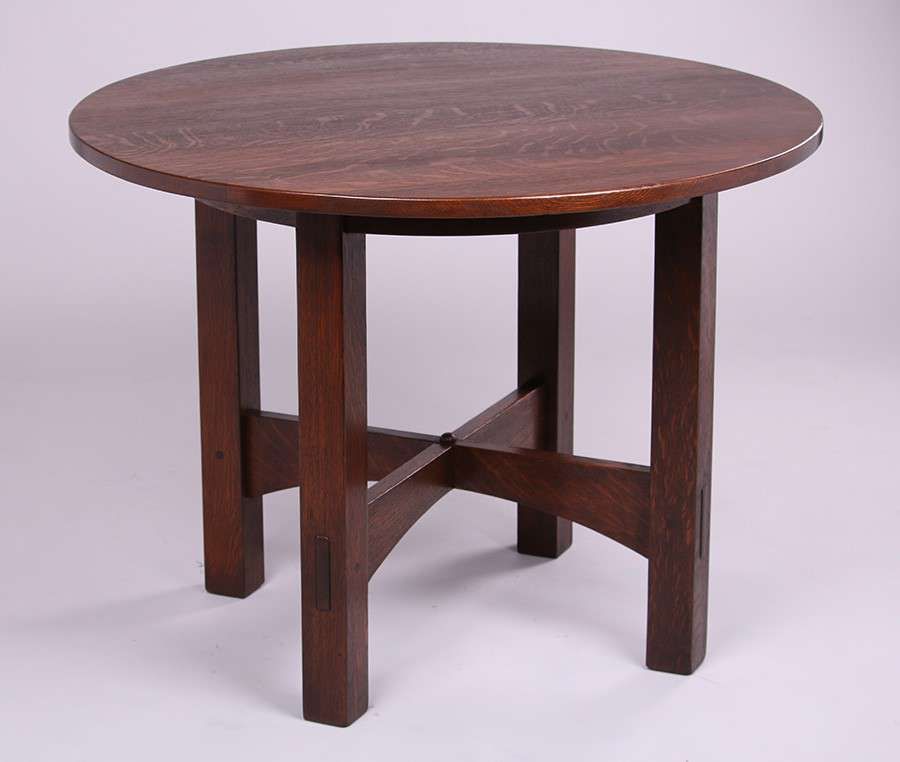 Large Gustav Stickley Lamp Table c1903-1904. Signed with Eastwood Paper Label. Refinished. 40"d x 29.5"h SOLD