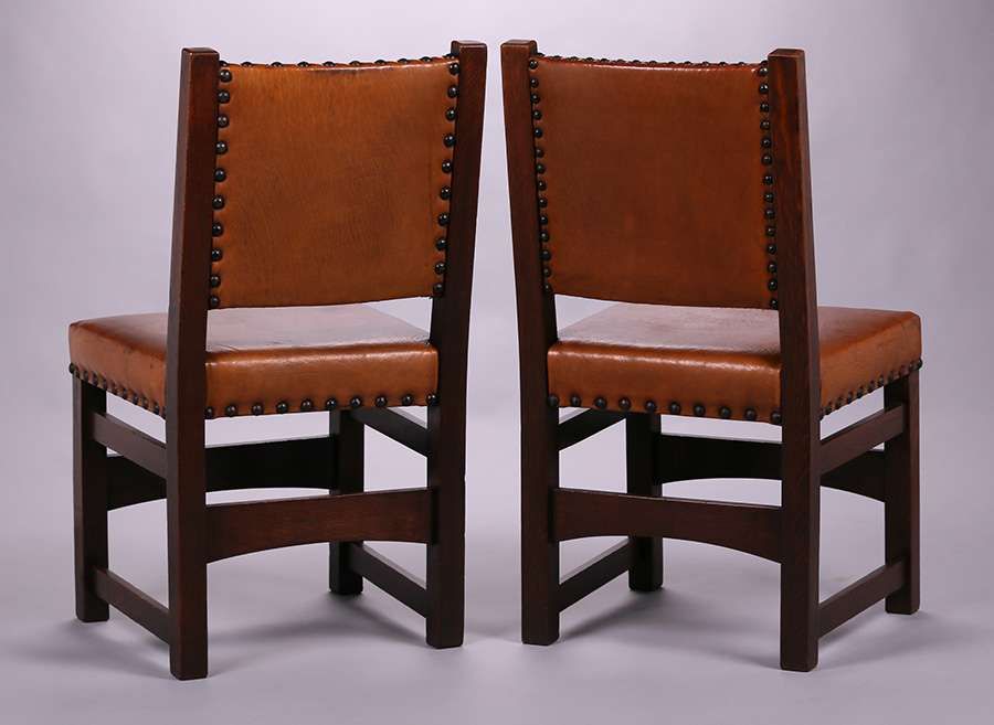 - Pair Early Gustav Stickley Side Chairs c1902