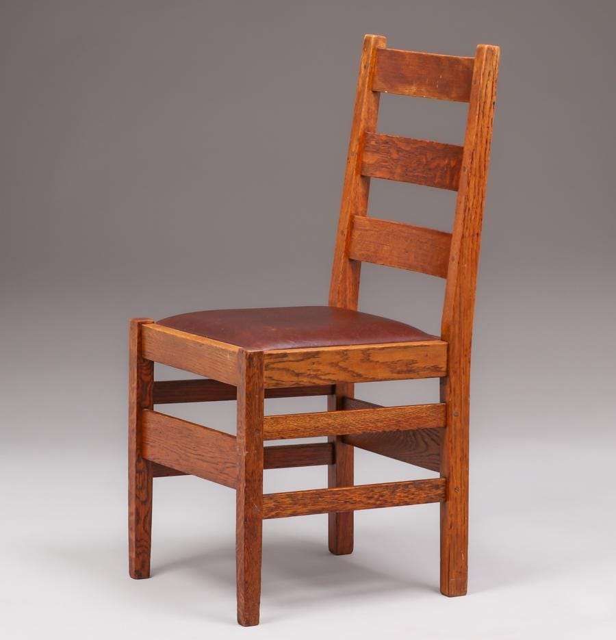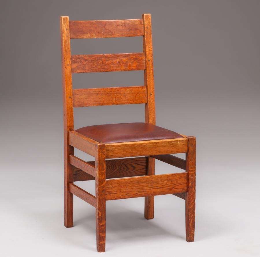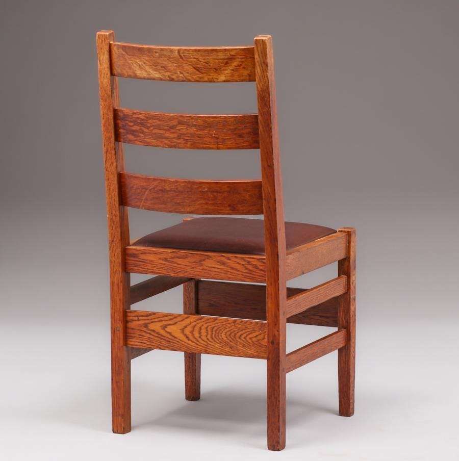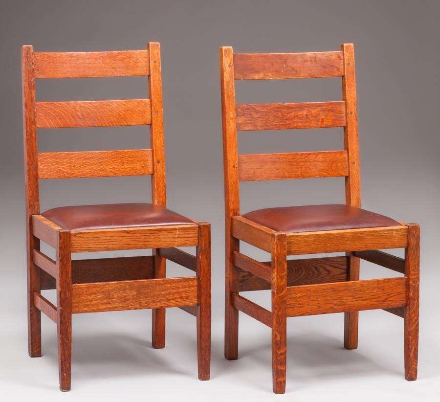 - Pair Gustav Stickley #350 Ladder Back Chairs c1910