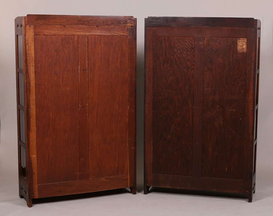 Pair of Gustav Stickle y One-Door China Cabinets. Signed. Both excellent original finish. 58.5"Hx35.5"Wx13"D SOLD