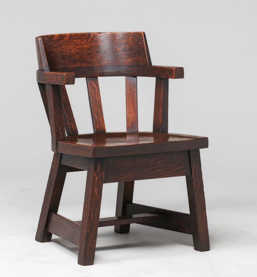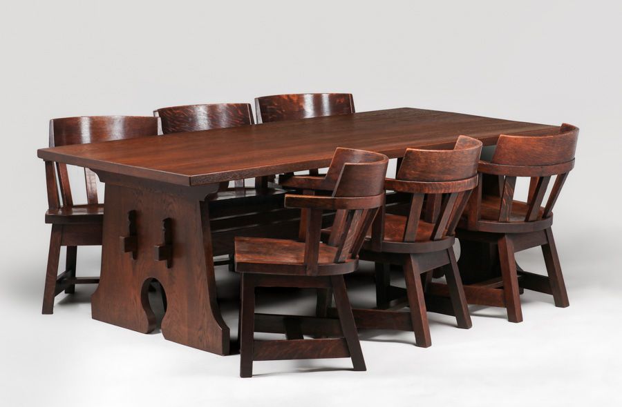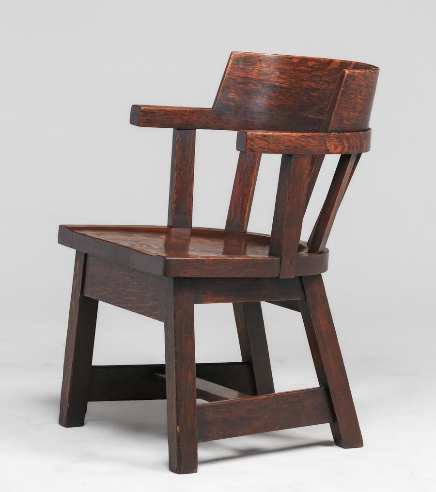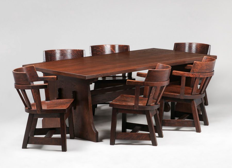 - Rare Gustav Stickley Set of 6 Oak Captain's Chairs c1910