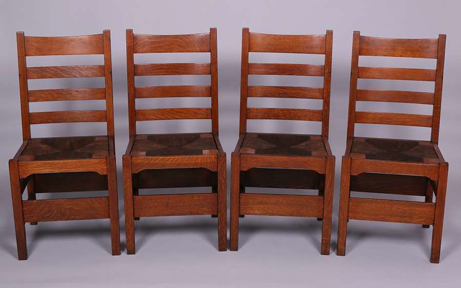 - Set of 4 Early Gustav Stickley Ladde-Back Dining Chairs c1902