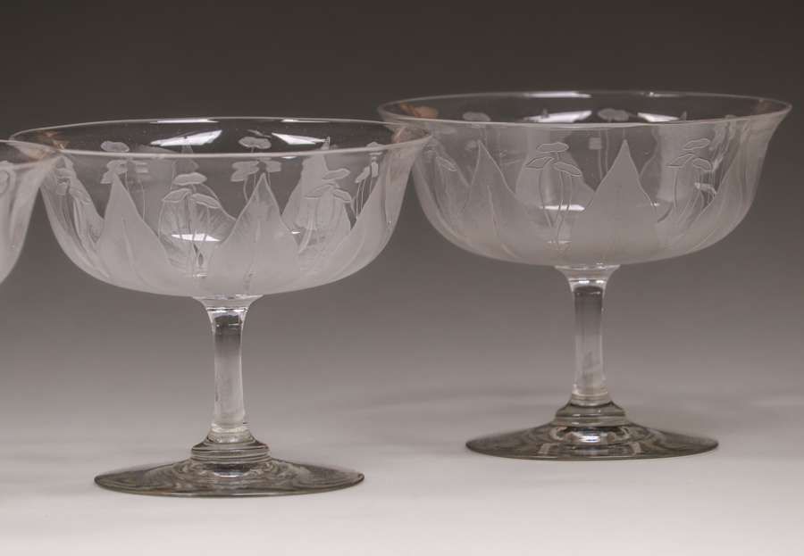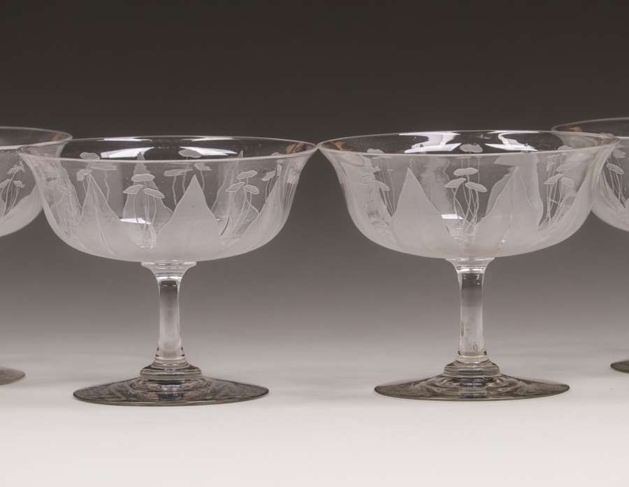 - Set of 6 Gustav Stickley Lily Pattern Crystal Glasses c1915