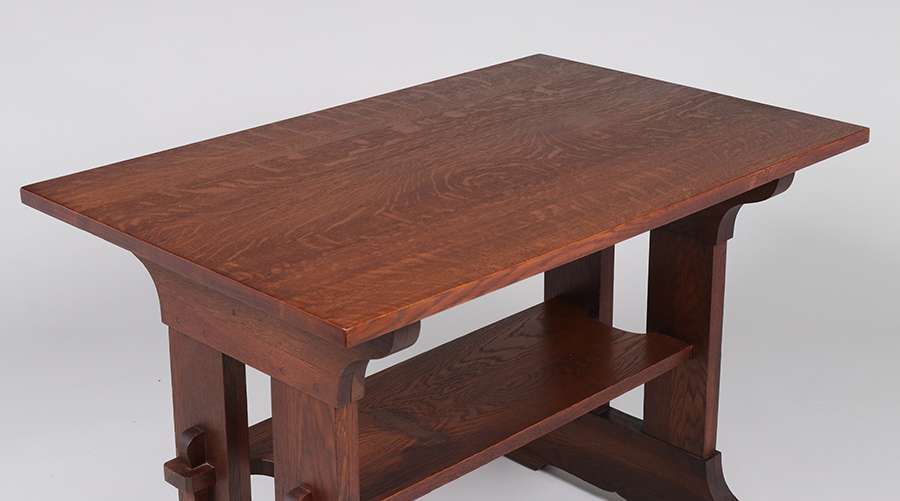 - Small Gustav Stickley 42"w Trestle Table c1904