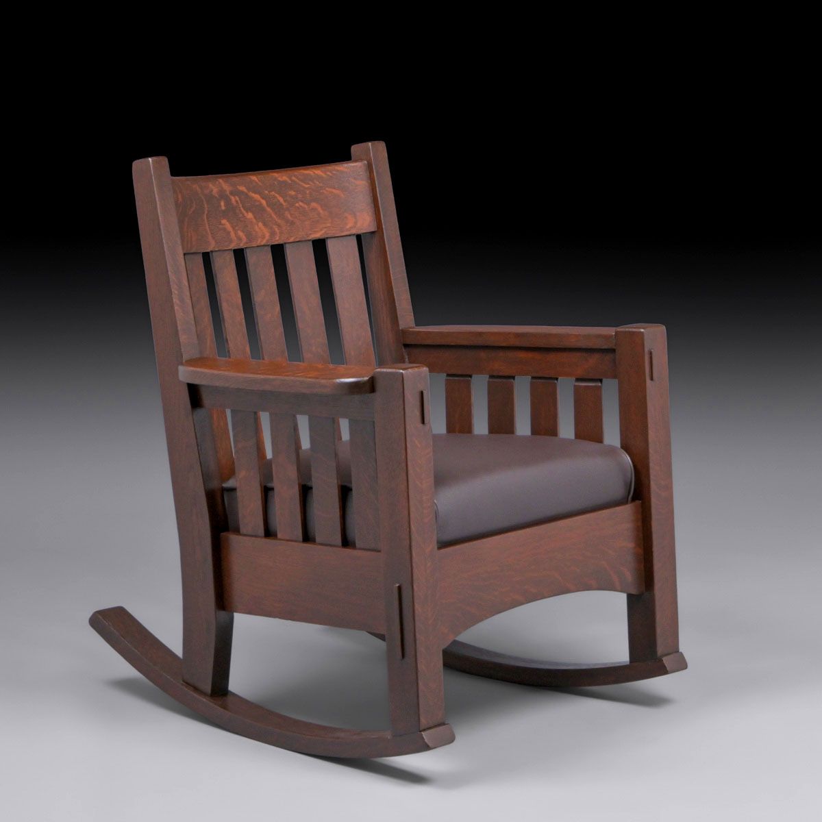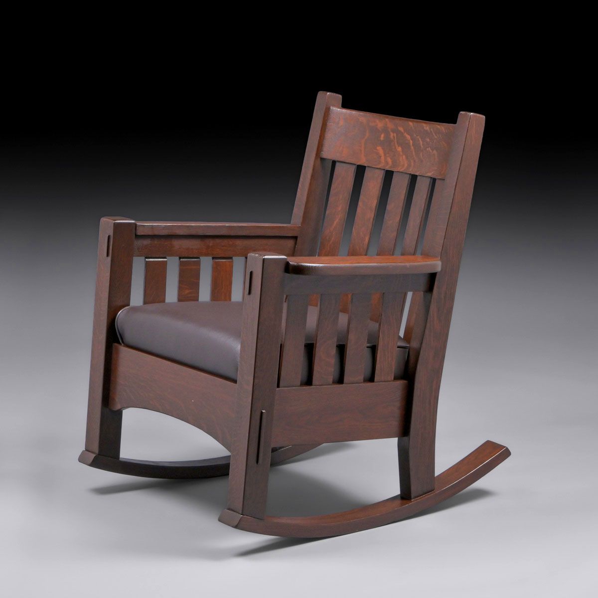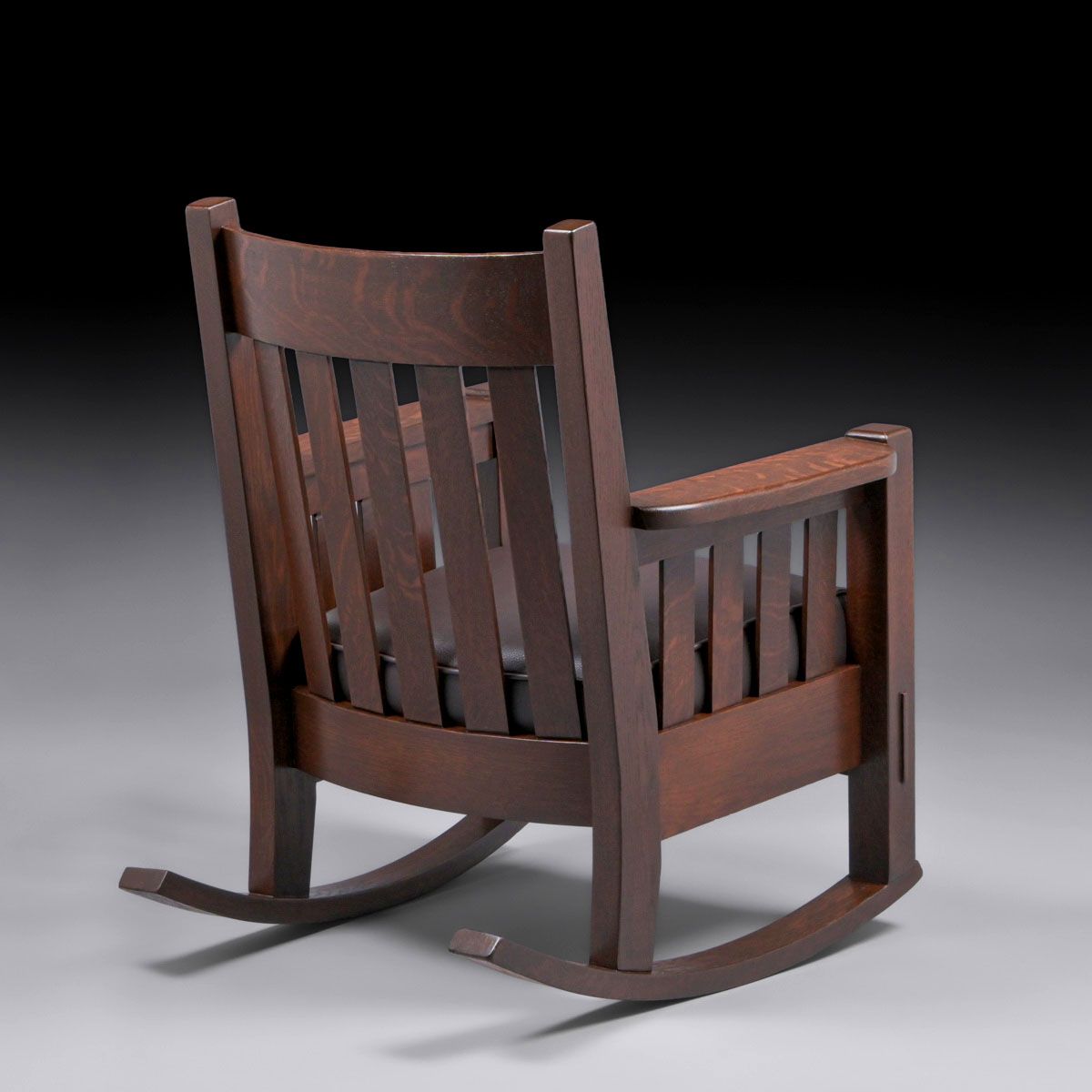 Harden Furniture Co Oak Slatted Rocker c1910. Unsigned. Very nicely refinished. 36″h x 29″w x 32″d