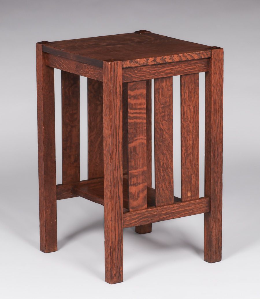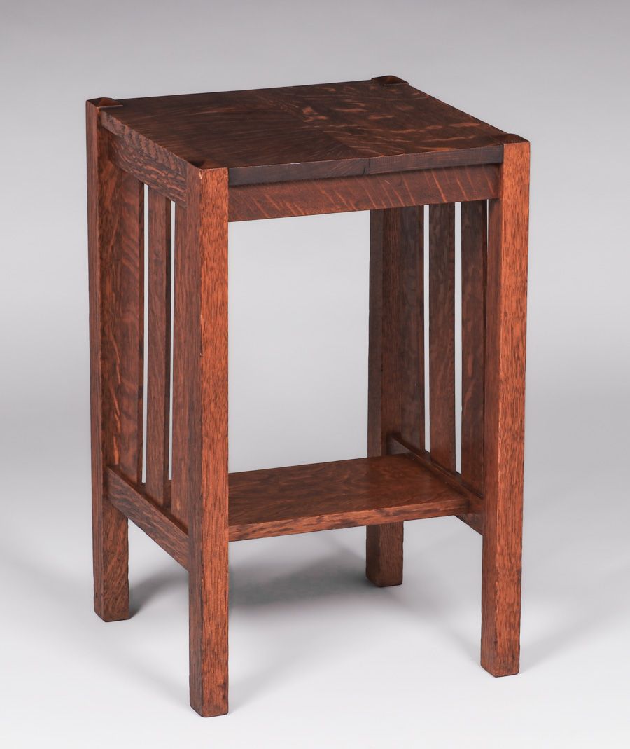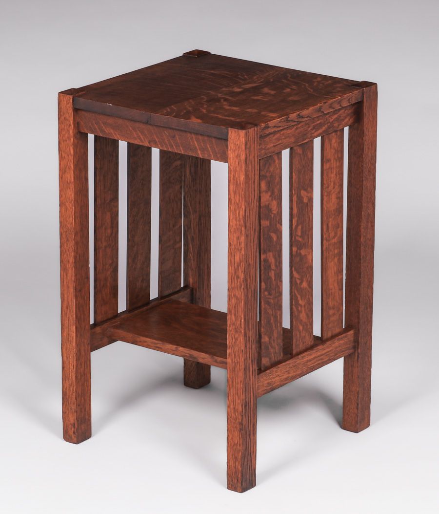 Harden Furniture Co Slatted Oak Side Table c1910. Signed. Excellent original finish. 26.25"h x 16.25" x 16" SOLD