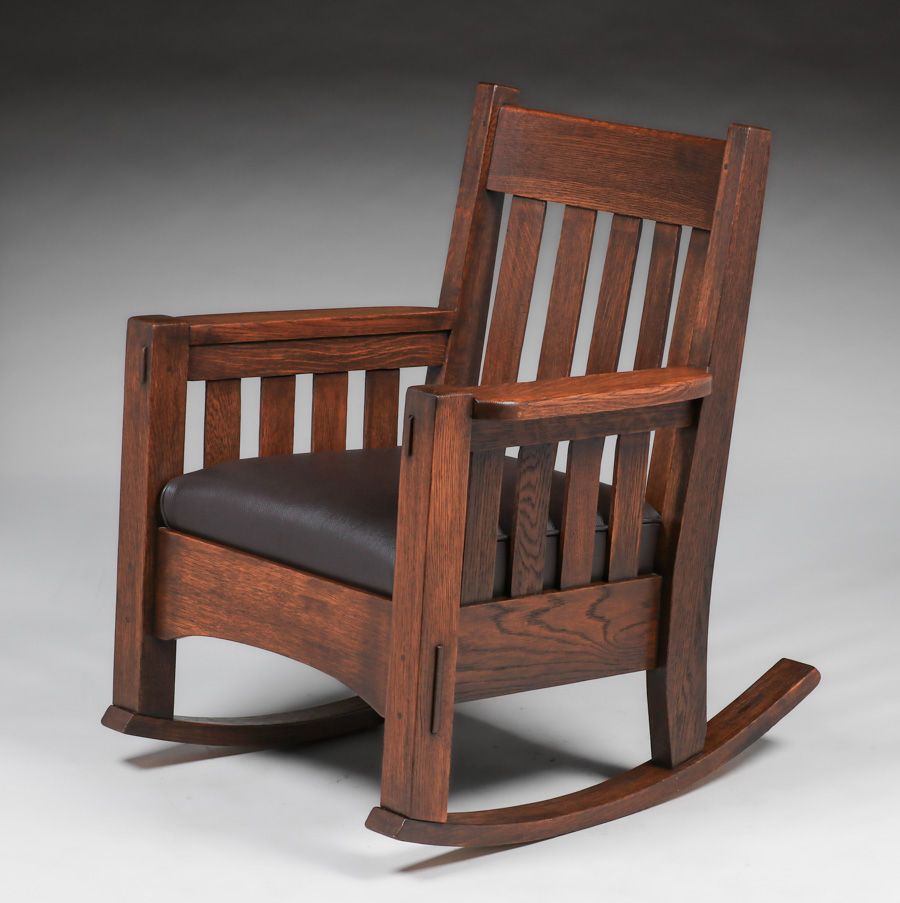 Harden Furniture Co Slatted Rocker c1910. Unsigned. Excellent original finish. 36″h x 29″w x 32″d SOLD