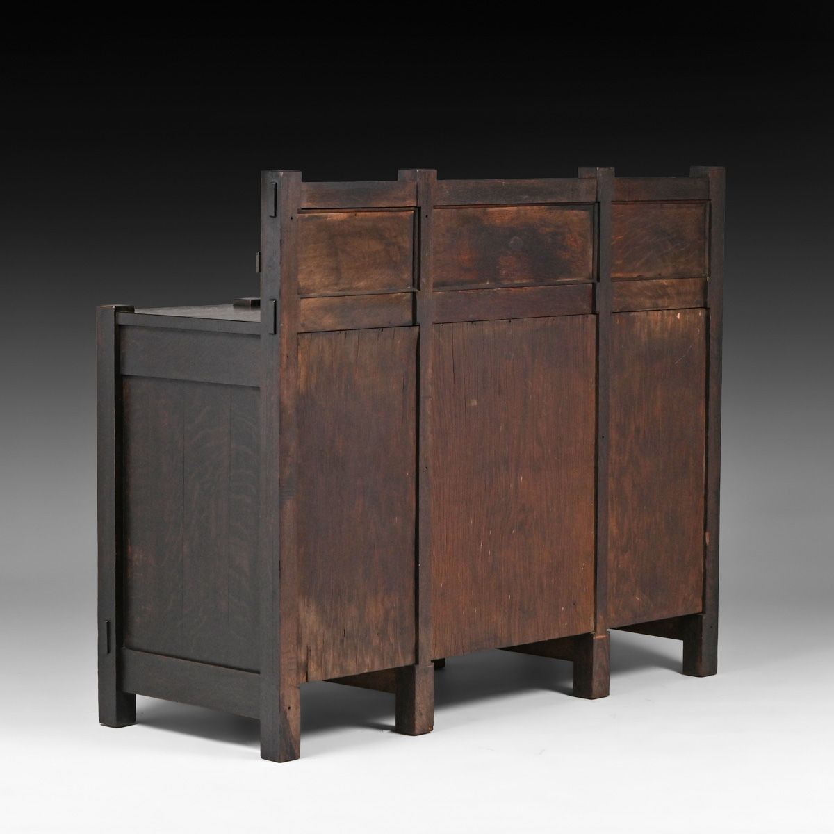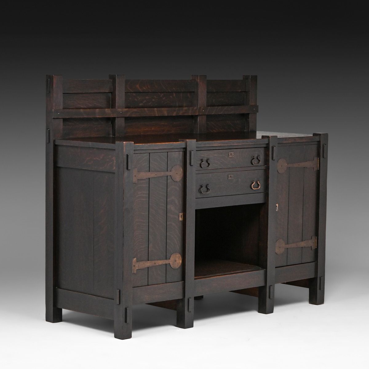 Imperial Furniture Co - Grand Rapids Massive Eight-Leg Sideboard c1903. Imperial was inspired by and often copied Gustav Stickley's designs. Unsigned. Excellent dark original finish. 60.5"w x 52.5"h x 24.5"d