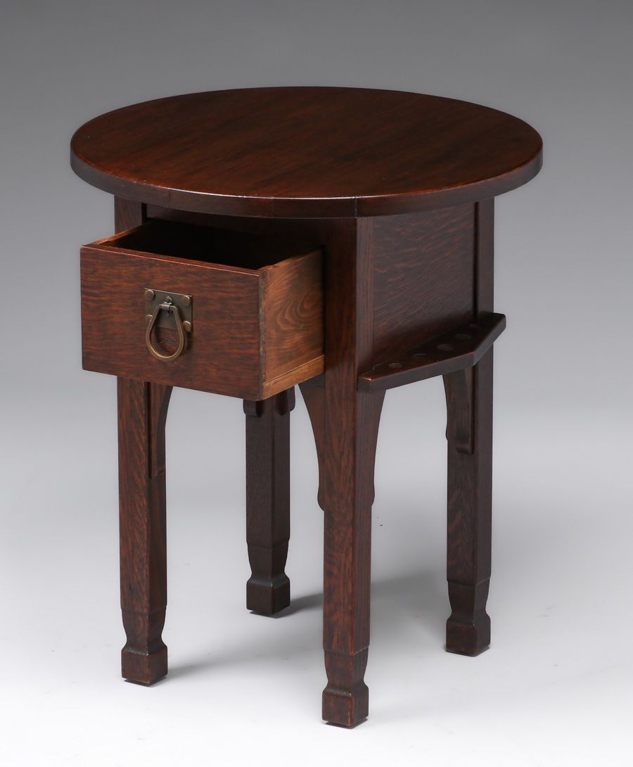 Imperial Furniture Co One-Drawer Side Table c1910. Unsigned. Top refinished perfectly to match excellent original finish. 26.5″h x 22.25″d SOLD
