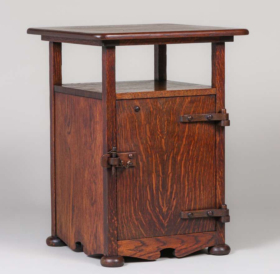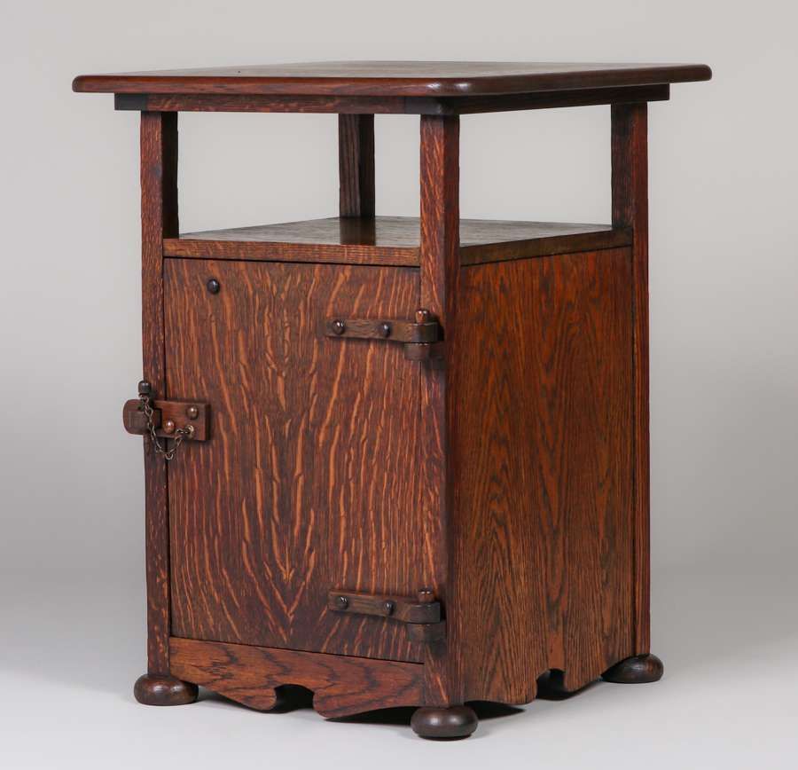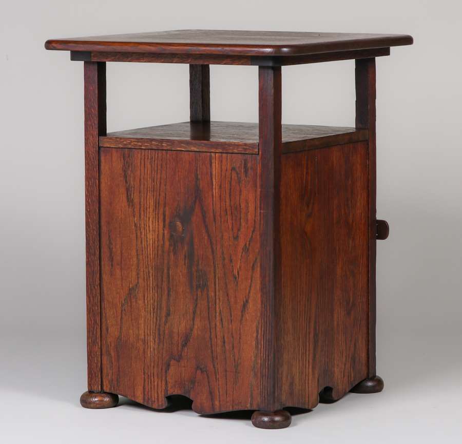 Jamestown Furniture Co Cellarete Table c1910. Unsigned. Top refinished perfectly to match original finish base. 28"h x 21.5" x 21.5" SOLD