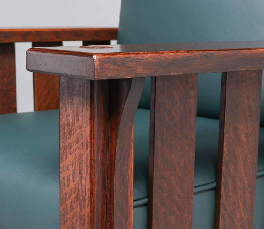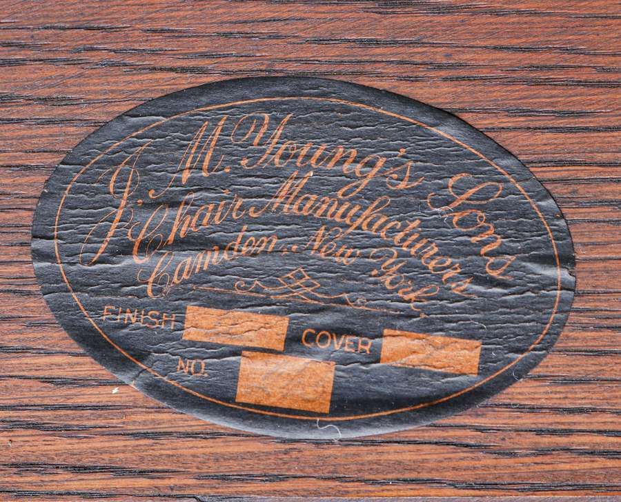 JM Young Slatted Armchair c1910s. Signed. Excellent original finish. Rock solid sturdy. 41.5"h x 29.5"w x 28"d SOLD