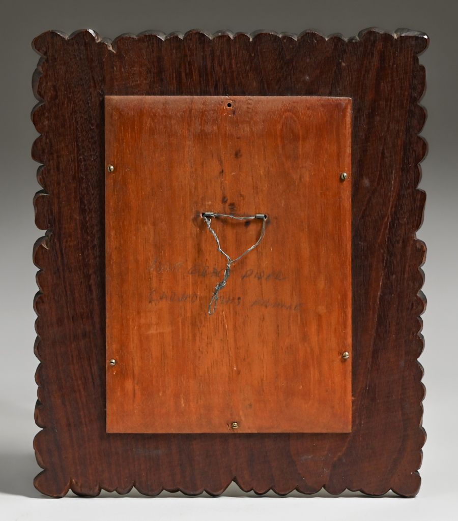John Bradstreet - Grace Porter Brett Piper (1858-1939) Minneapolis Hand-Carved Frame c1905. Piper lived in Minneapolis and worked briefly with John Bradstreet. This beautiful hand-carved Japonesque influence shows the extraordinary skill of Grace Piper. Written on back “Aunt Grace Piper carved this frame”. Excellent condition. 10.75″h x 8 5/8″w SOLD
