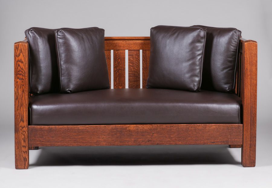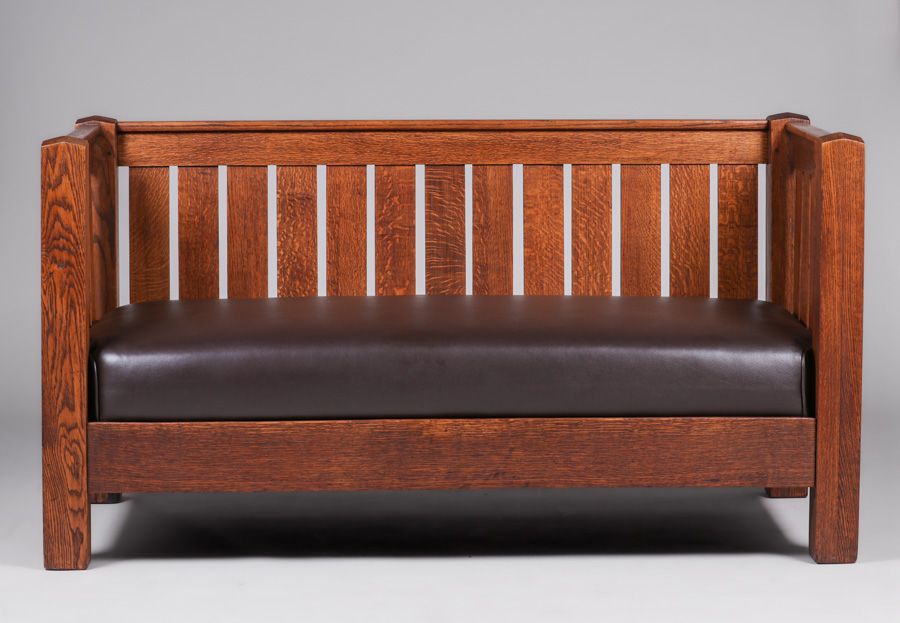 Karpen Furniture Co Evenarm Settle c1910. Very similar to the rare L&JG Stickley #280 Evenarm Settle. Unsigned. Very nicely refinished. 63″w x 31″d x 34″h SOLD