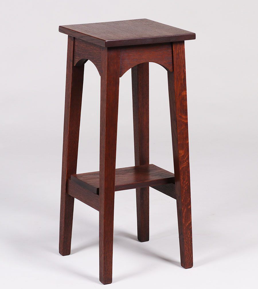 Kingcraft Furniture Co - Portland, OR square side table c1910. Signed. Top refinished perfectly to match original finish base. 28.5"h x 12" x 12" SOLD