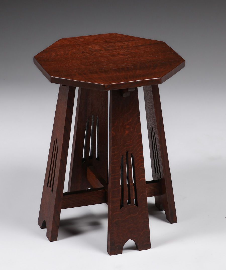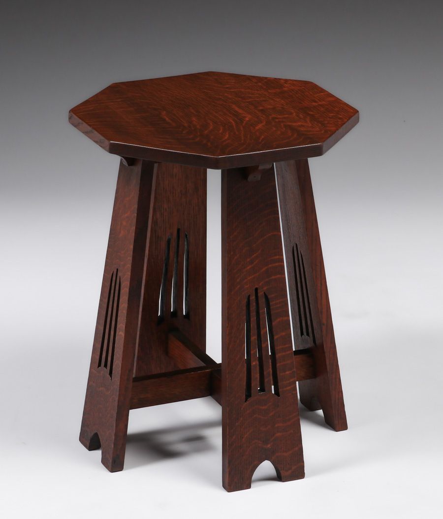 Early Lakeside Crafts Shop - Woodcraft Guild - Sheboygan, WI Cutout Taboret c1910. Signed. Very nicely refinished. SOLD