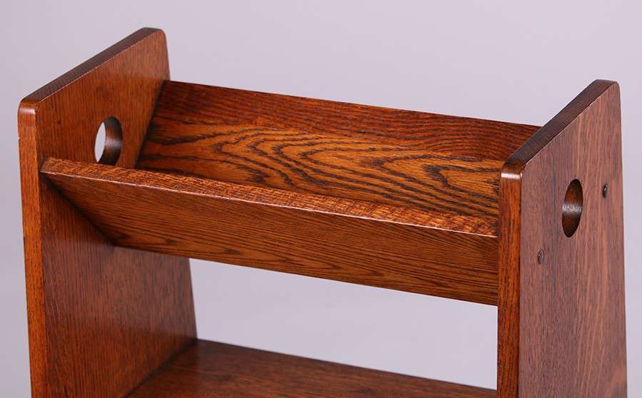 Lakeside Craft Shops Bookshelf with Book Trough Top. Unsigned. Original patina. 30"h x 17"w x 12.5"d SOLD