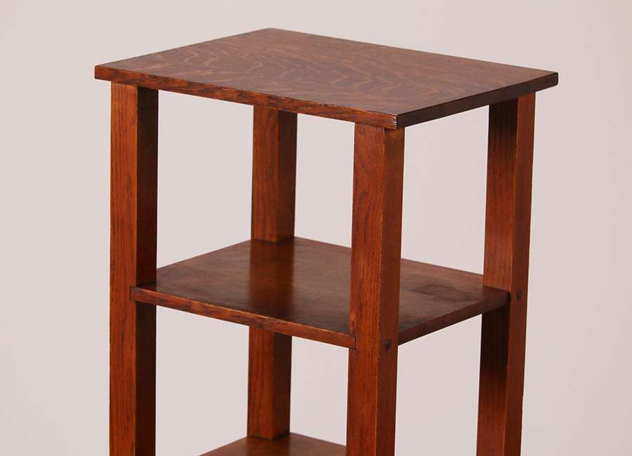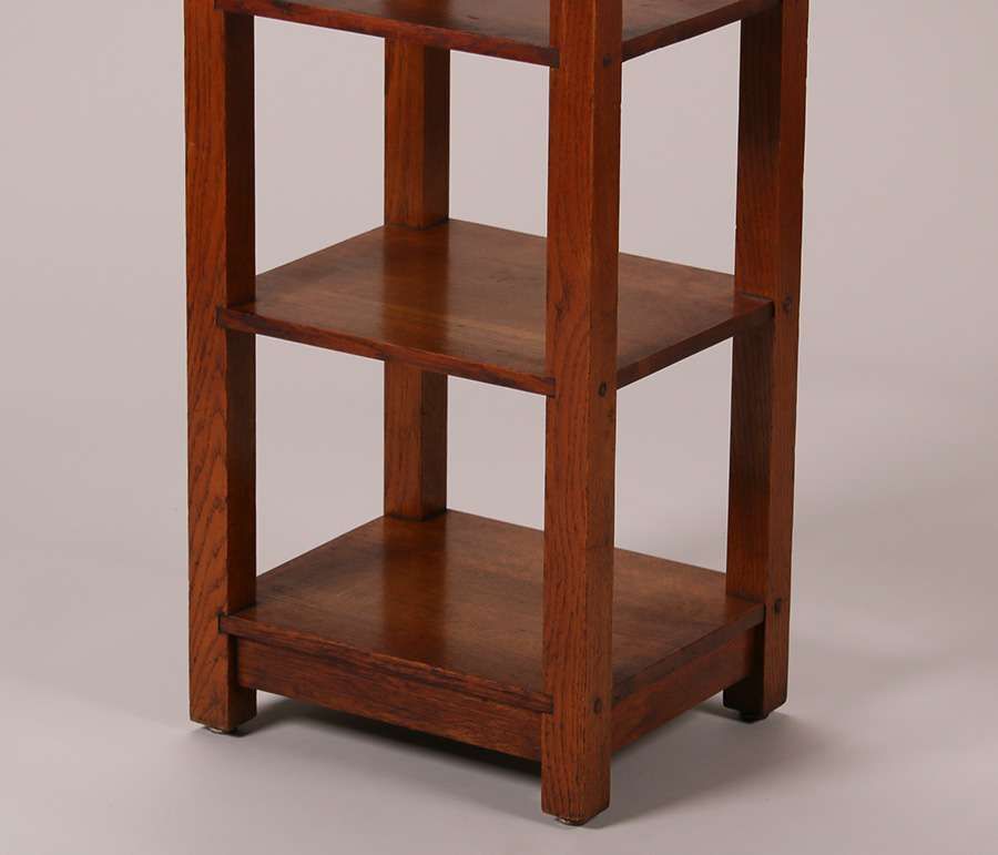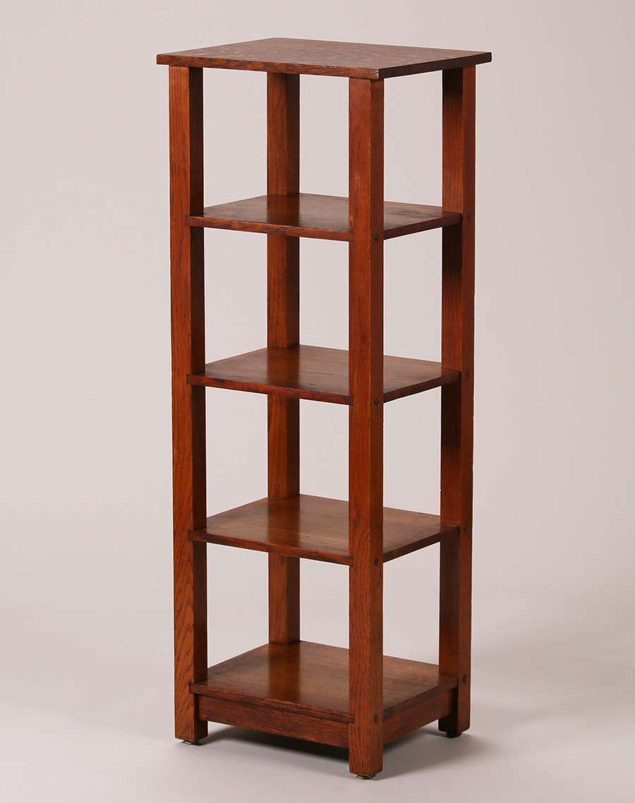 Lakeside Craft Shops tall oak shelf. Signed. Top refinished. Base original finish. 43.5"h x 16"w x 10"d SOLD