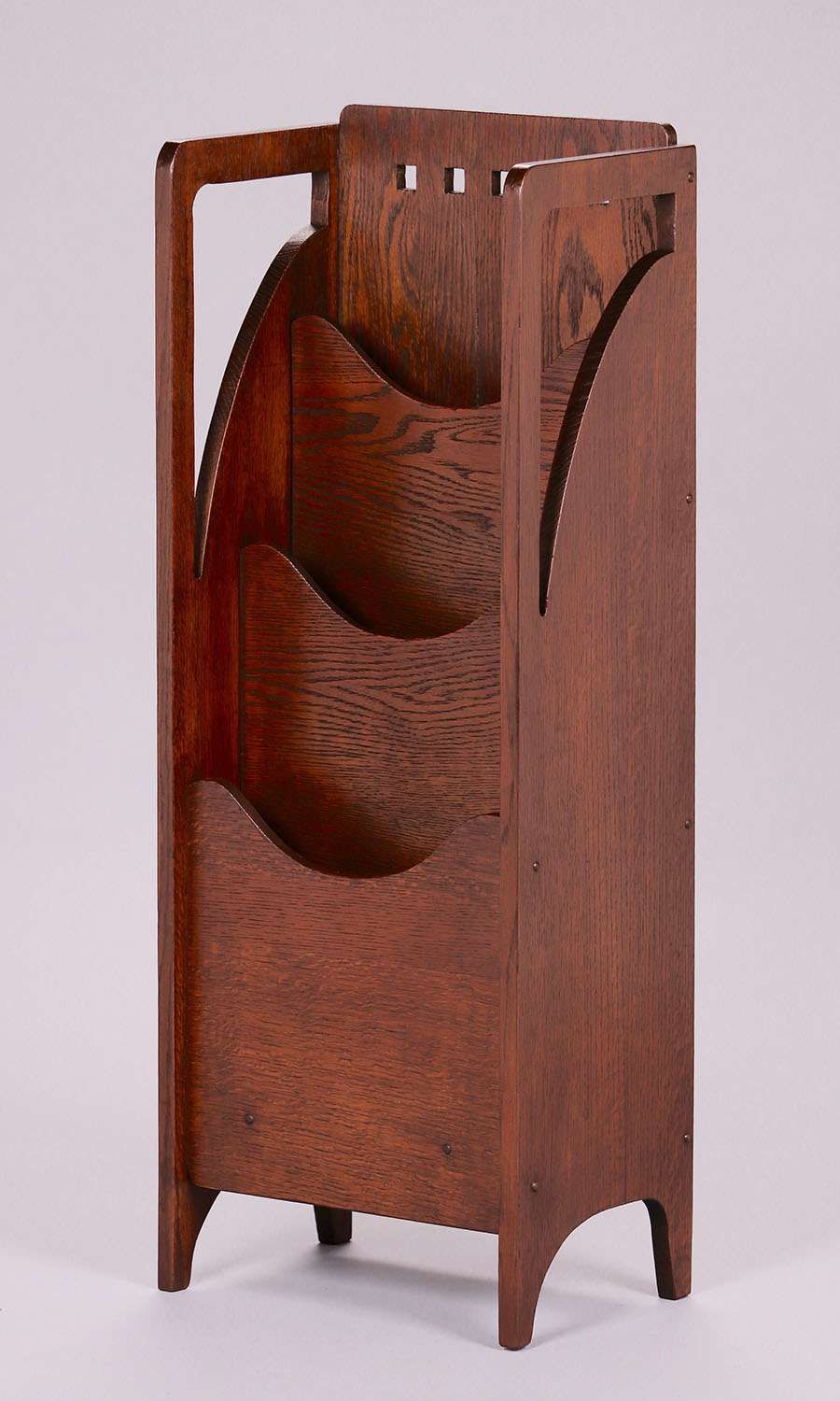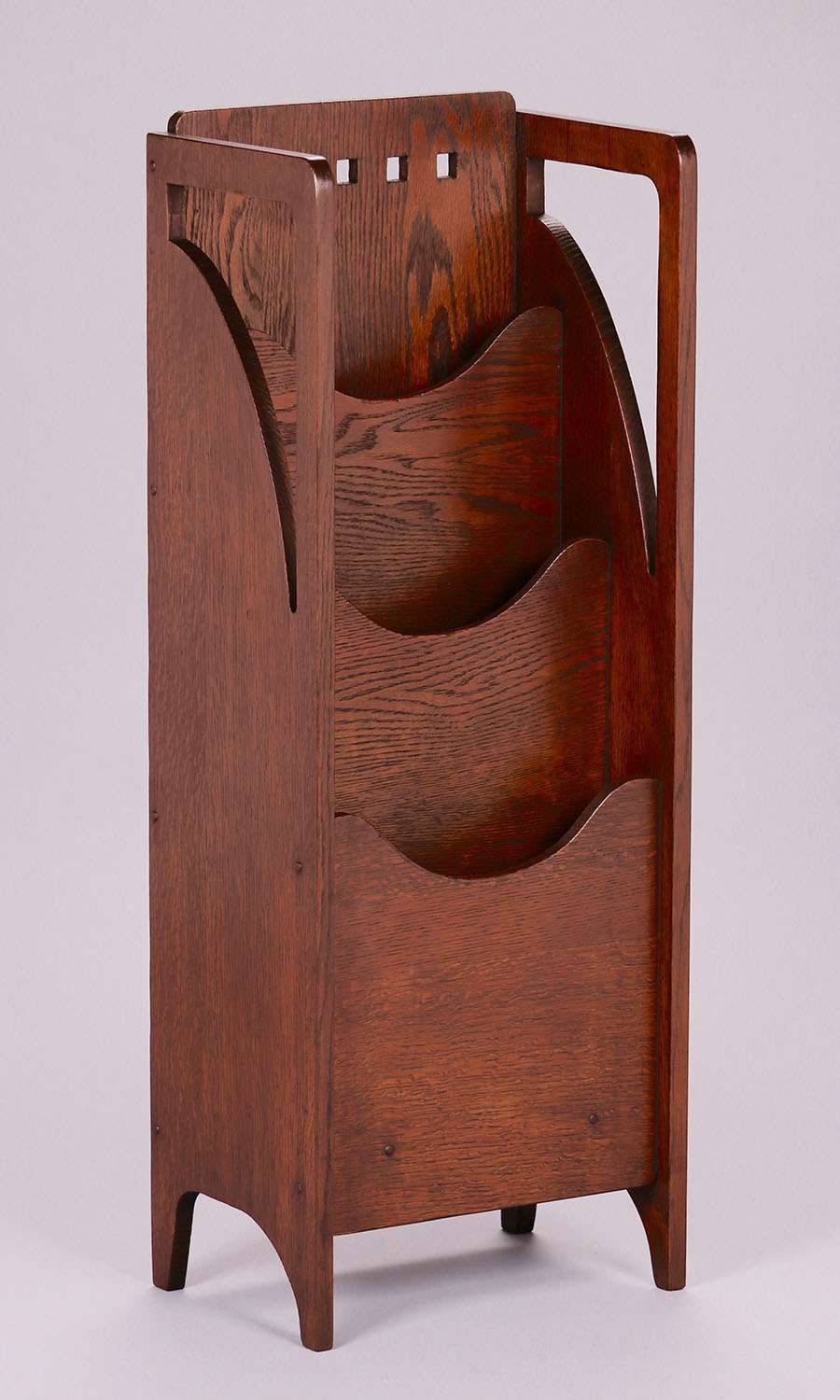 Lakeside Crafts Shop , Sheboygan, WI cutout magazine stand. Unsigned. Refinished. 38"h x 14.25"w x 9.5"d SOLD
