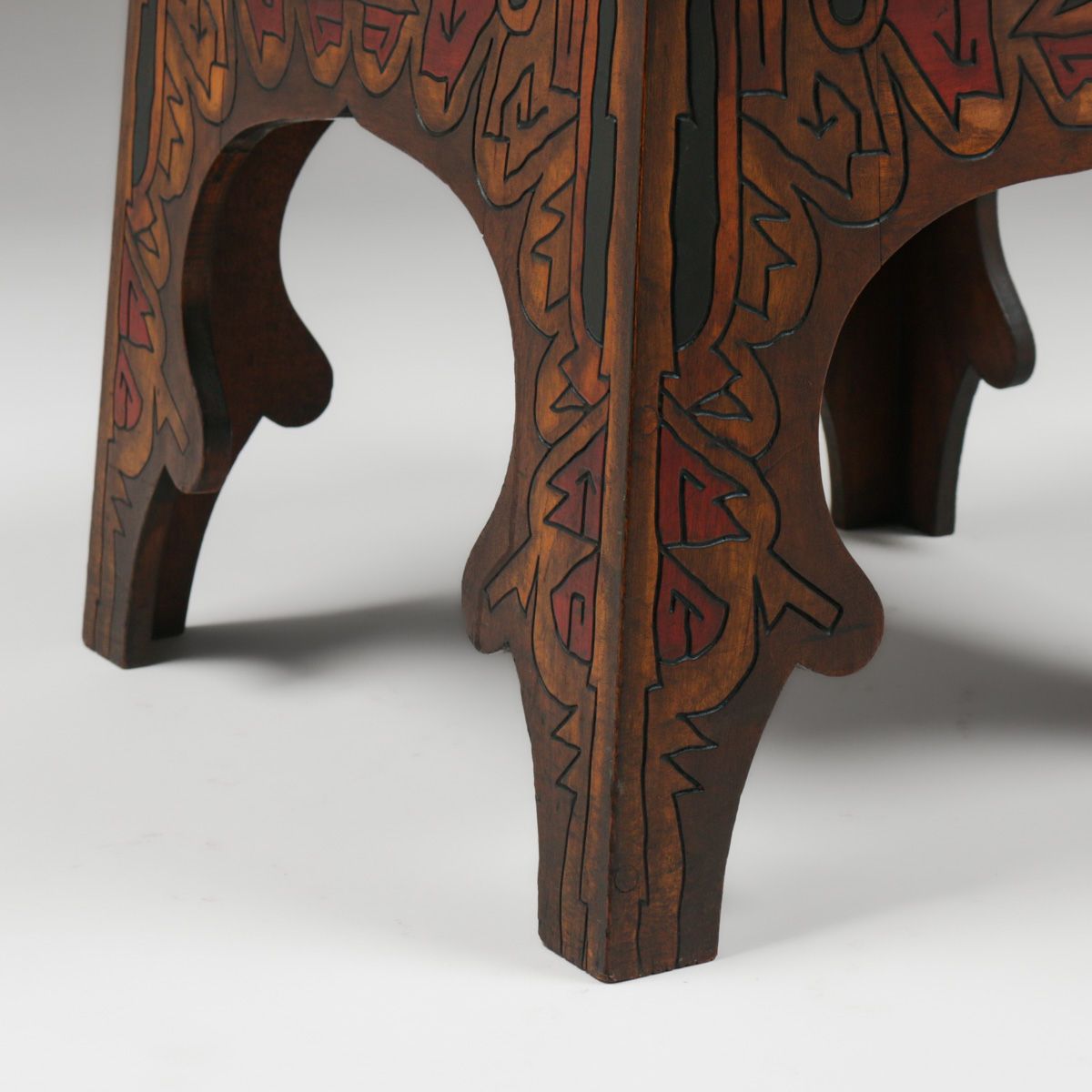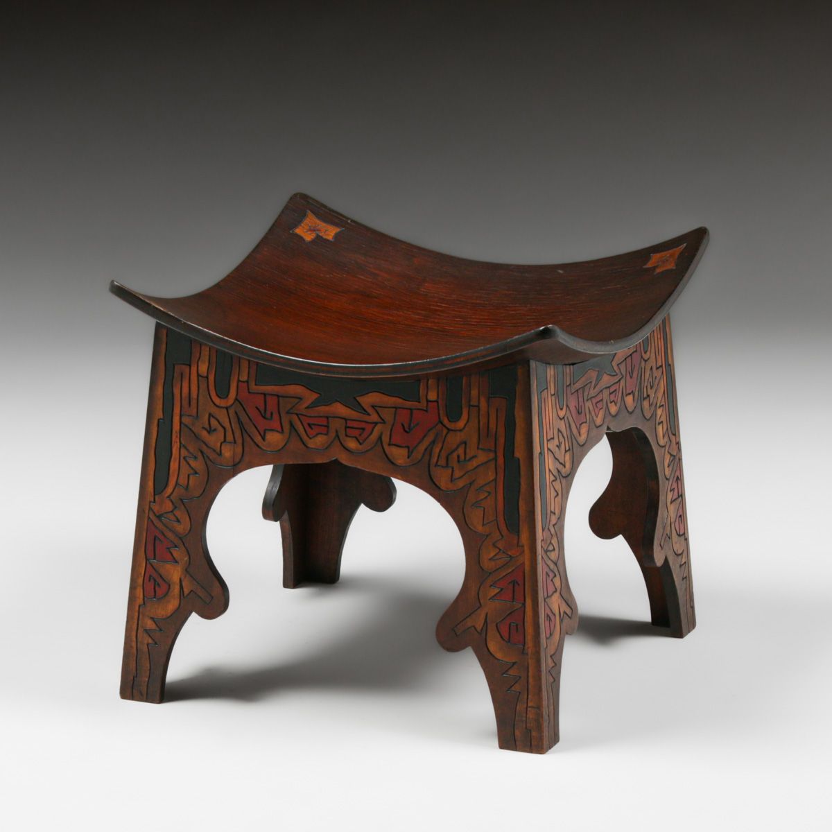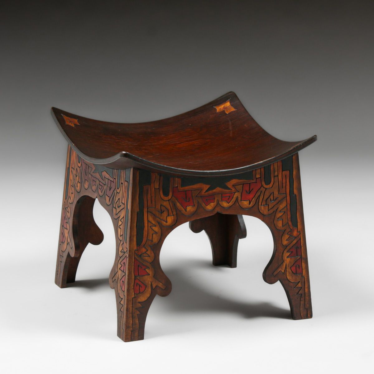 Liberty & Co - London - Attributed Carved & Painted "Thebes" Stool c1890s. Unsigned. Excellent original finish and quite sturdy. 15.25"h x 16.5"w x 16.5"d