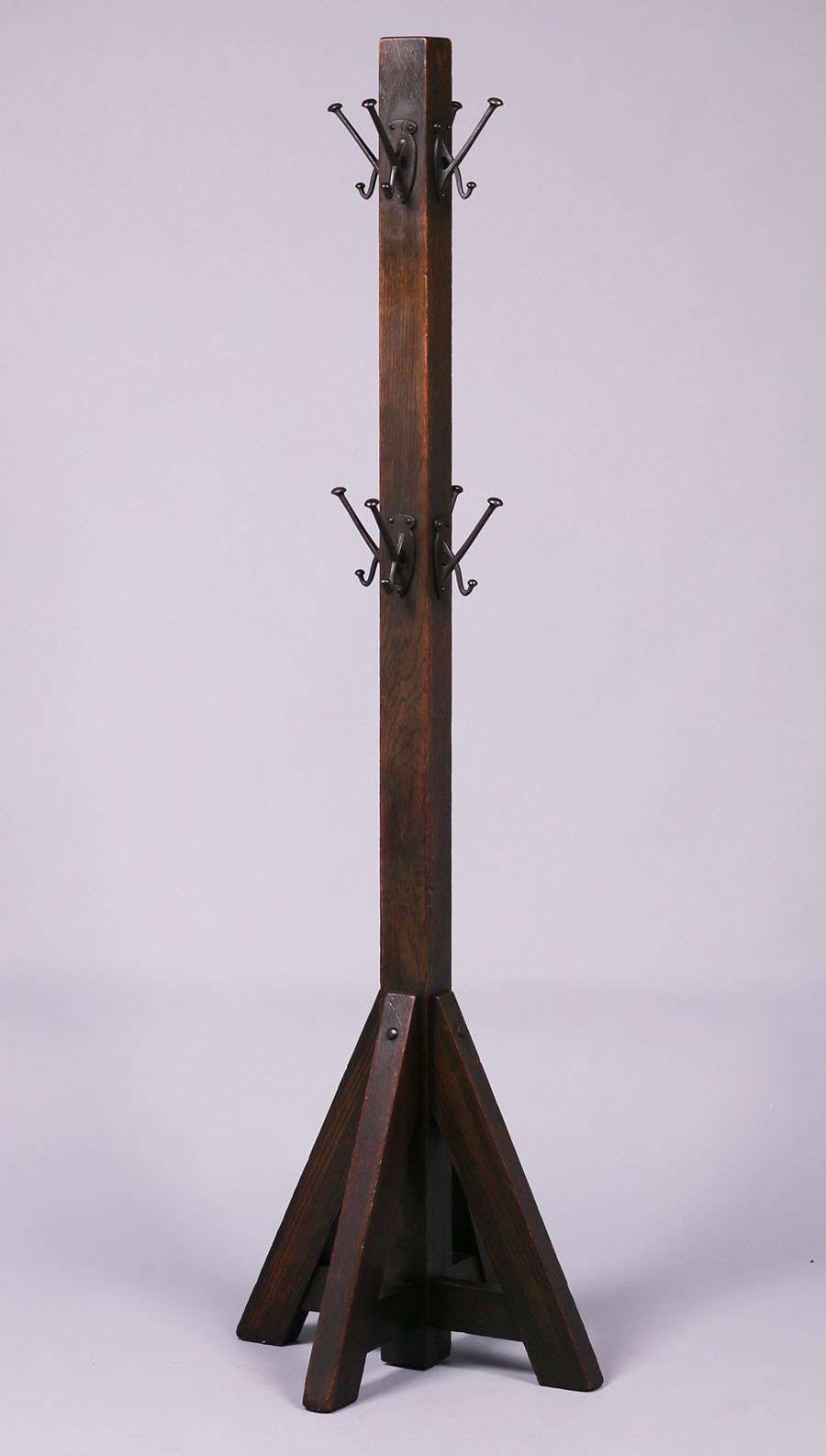 Lifetime Furniture Co coatrack with original extra set of hooks in center. Unsigned. Excellent original finish. 68"h x 21" x 21" SOLD
