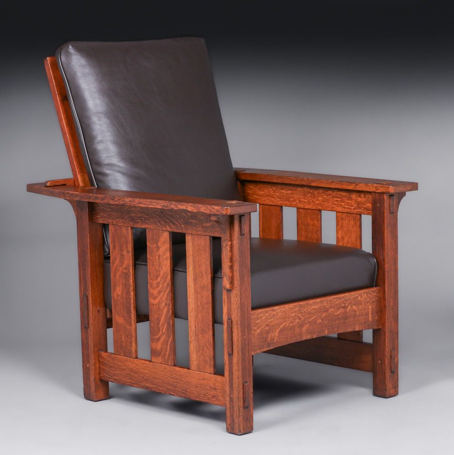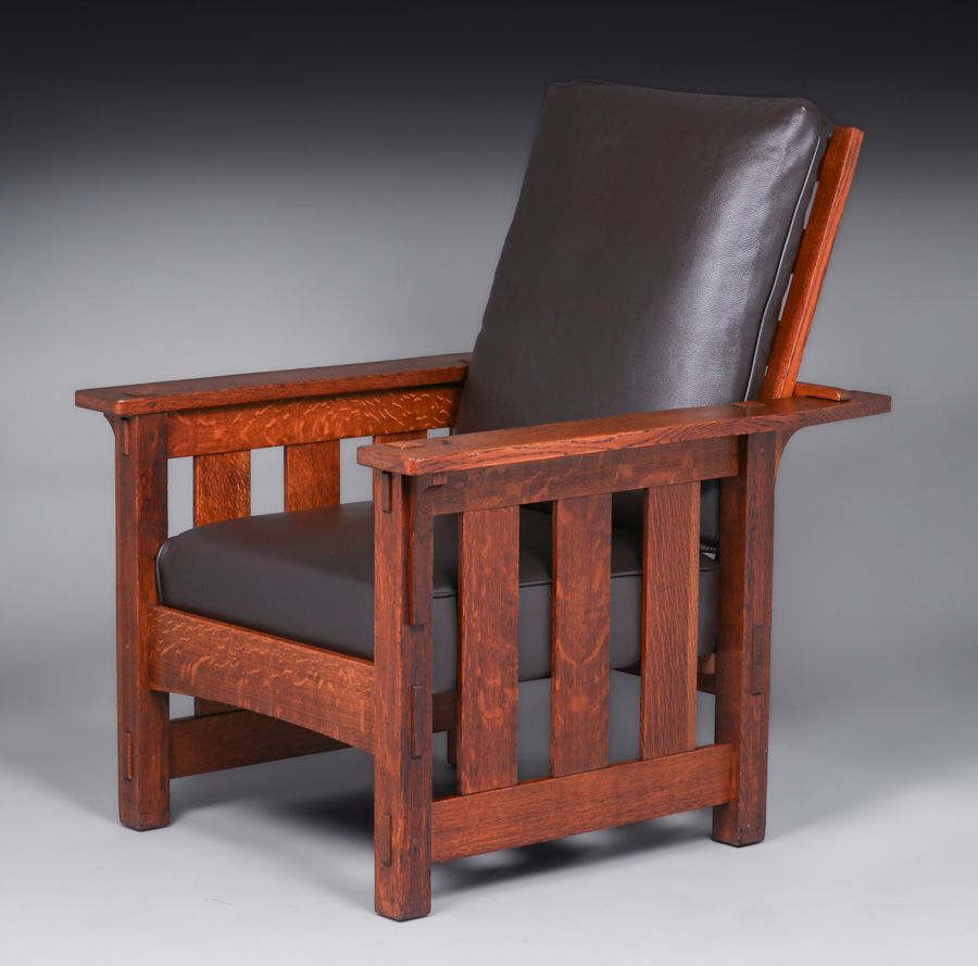 Lifetime Furniture Co Slatted Morris Chair c1910. Signed. Excellent original finish. 43"h x 31.75"w x 37.5"d SOLD