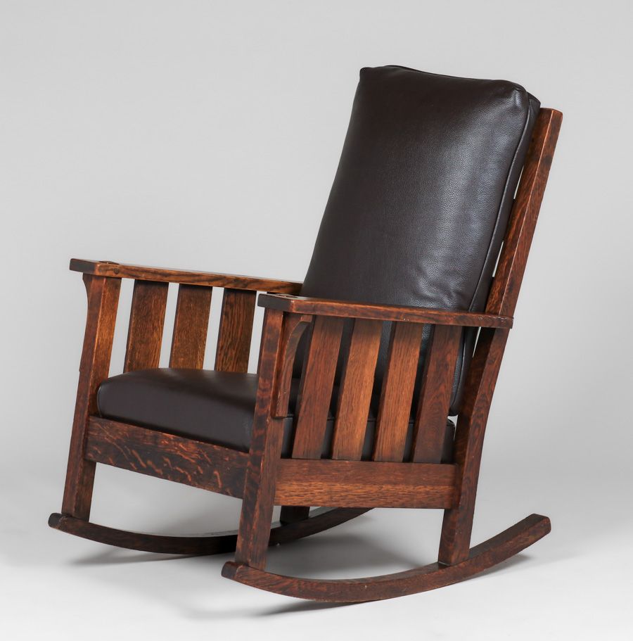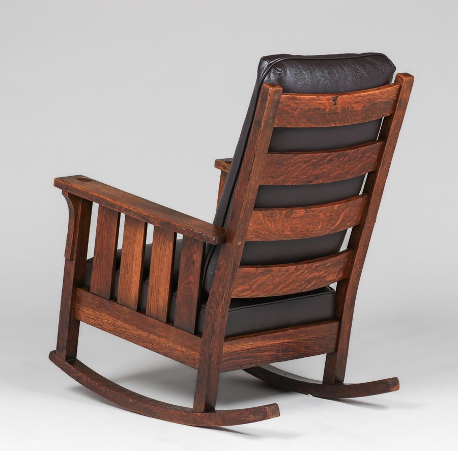 Lifetime Furniture Co Slatted Rocker c1910. Signed. Excellent original finish. 39"h x 27.5"w x 33"d $2200