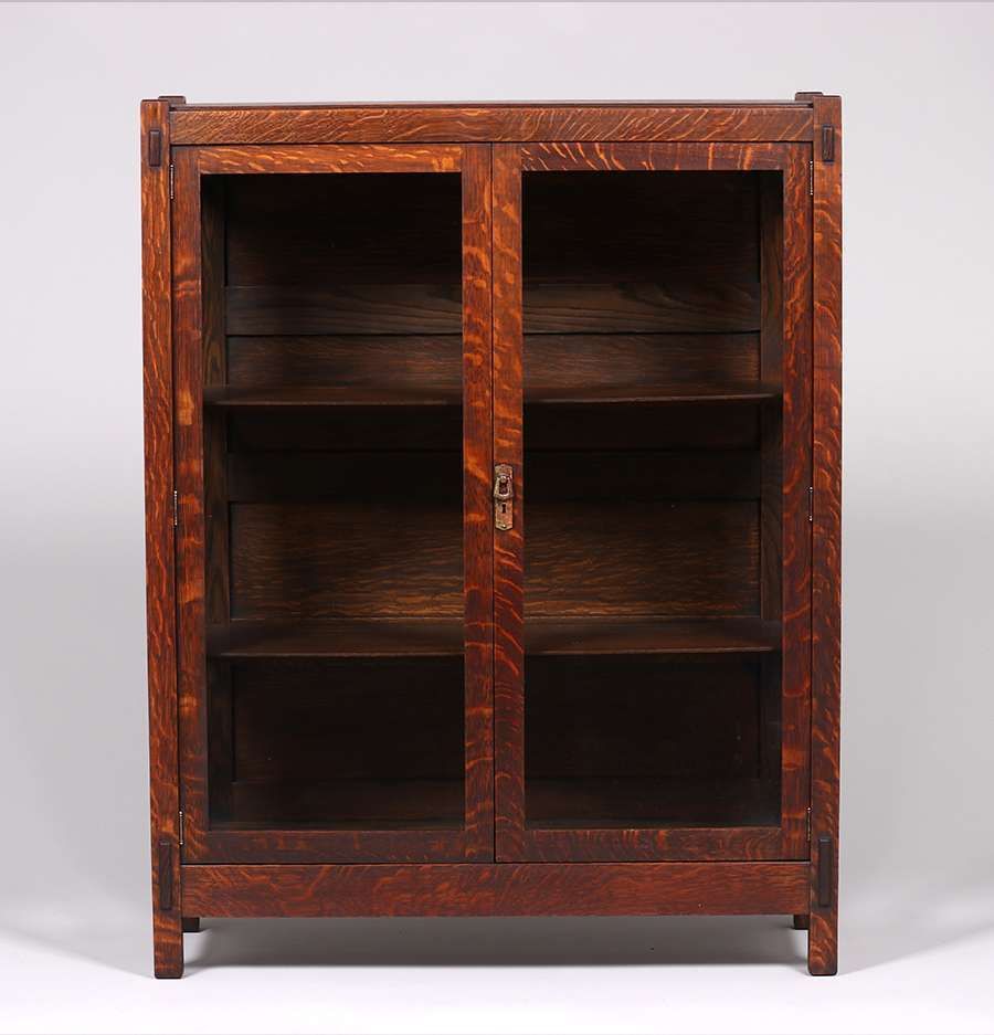 Lifetime Furniture Co two-door china cabinet c1910. Outline shadow of paper label show on back. Excellent original finish. 53"h x 41.5"w x 14.5"d SOLD