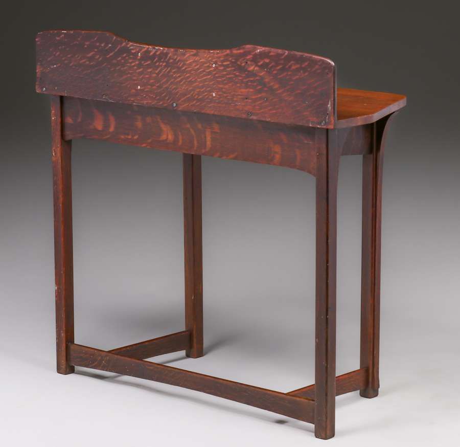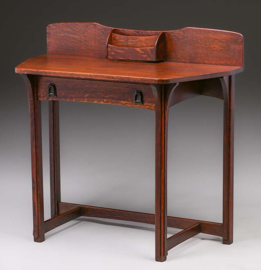 Lifetime Puritan One-Drawer Postcard Desk c1912. Unsigned. Excellent original finish. 38"w x 17.5"d x 35.5"h (29.5"h to top surface) SOLD