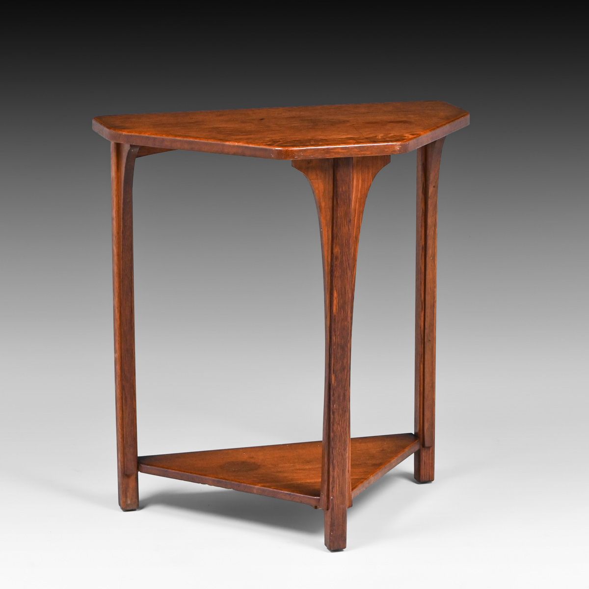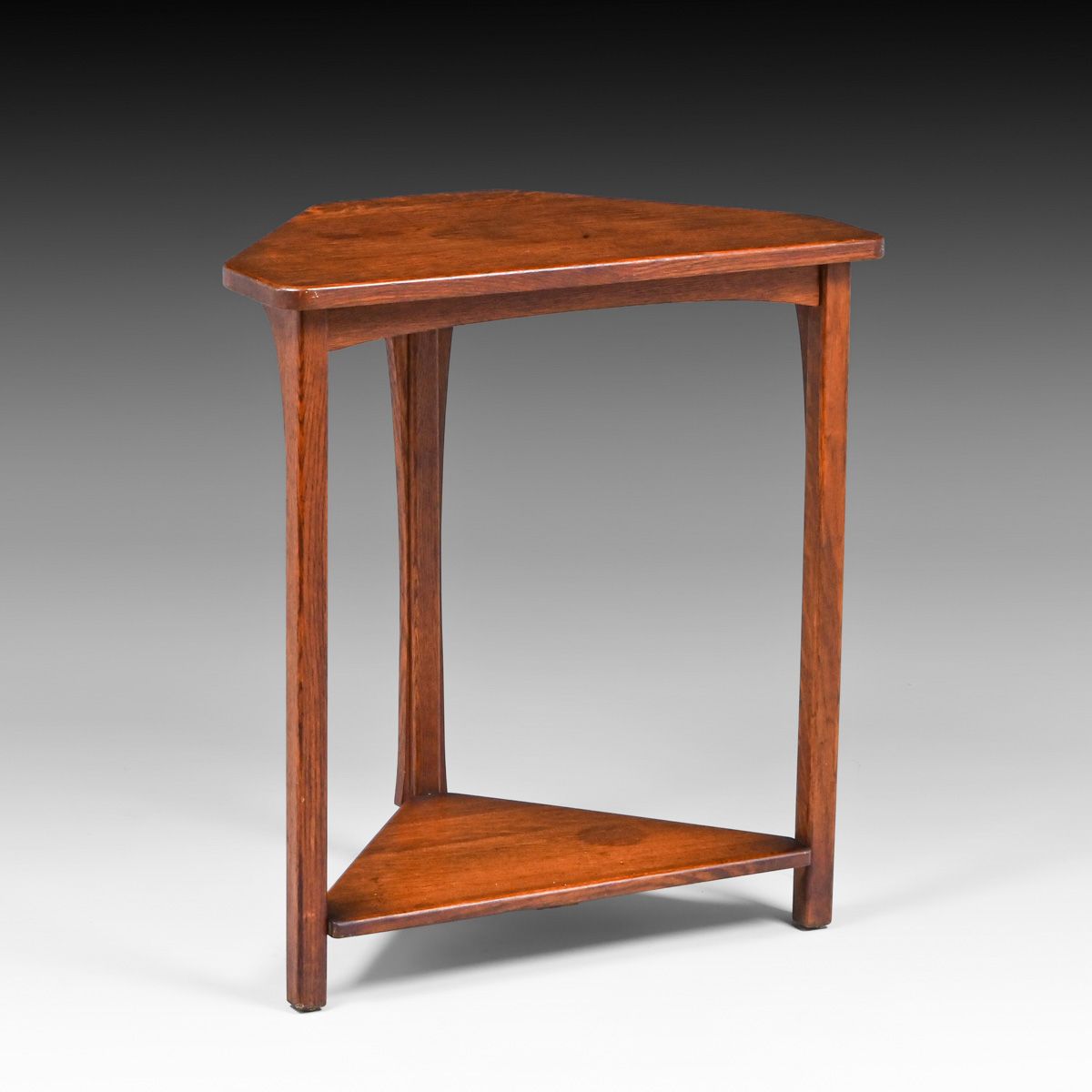 Lifetime Puritan Pair Oak Side Tables c1912. Signed. Excellent original finish. Very sturdy. 26"h x 24"w x 15 1/8"d