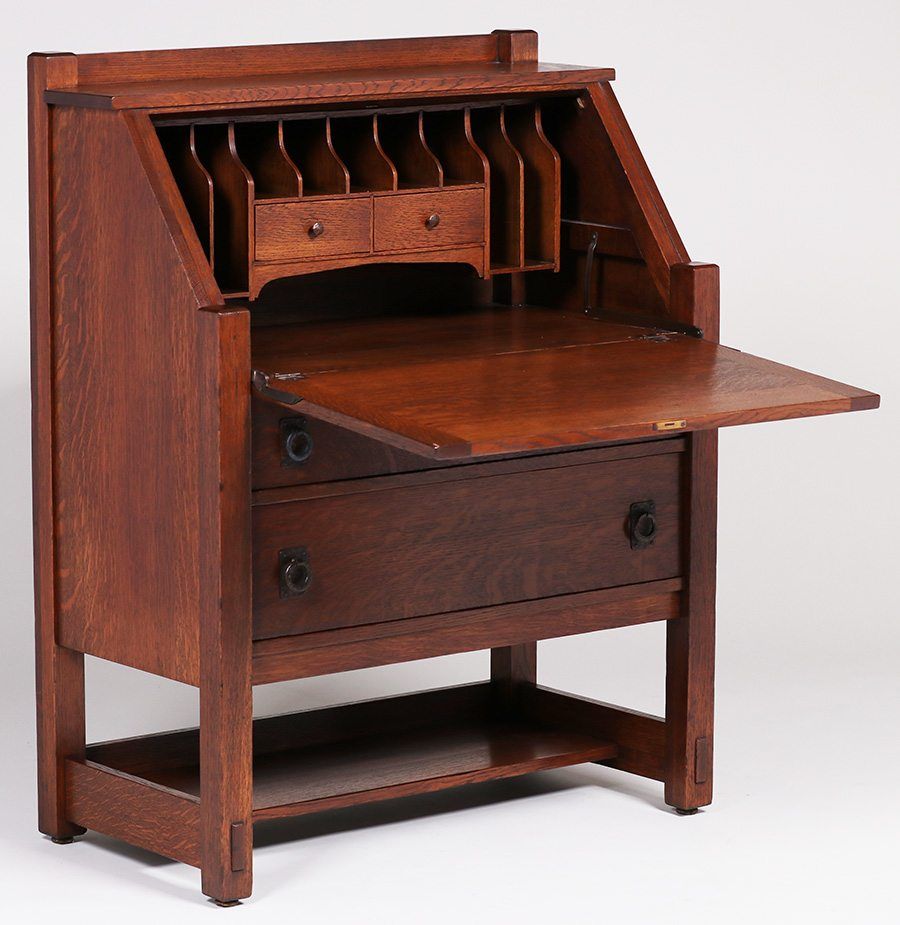 Lifetime Furniture Co two-drawer drop front desk c1910. Unsigned. Very nicely refinished. 43"h x 33.5"w x 17.75"d SOLD