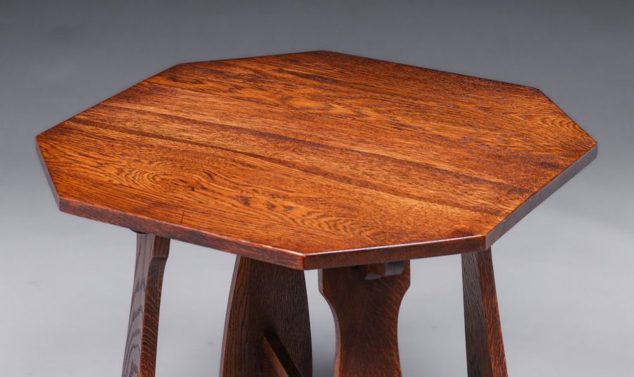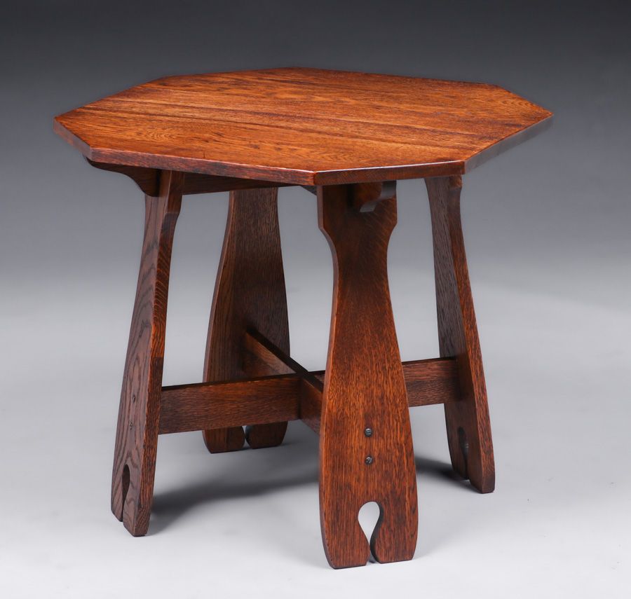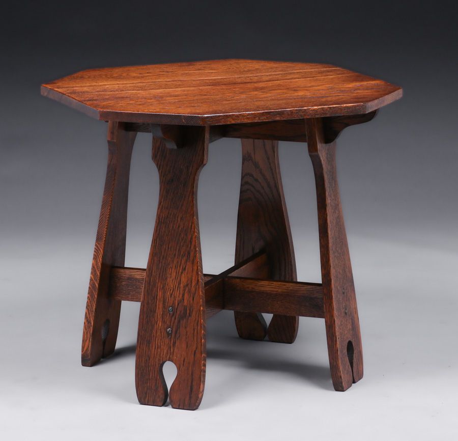 Early Limbert #100 Tea Table c1902-1905. Signed with paper label. Excellent original finish. Very sturdy. 24" x 24" x 22"h SOLD