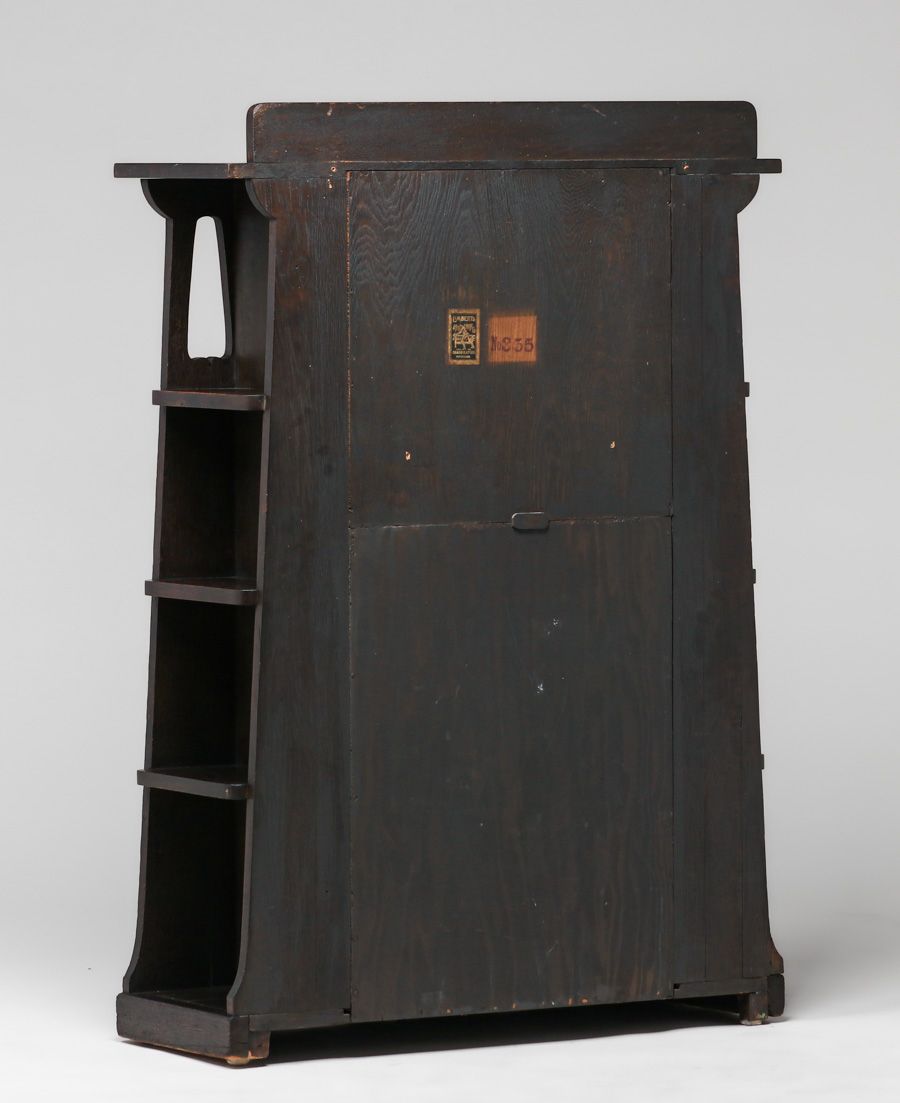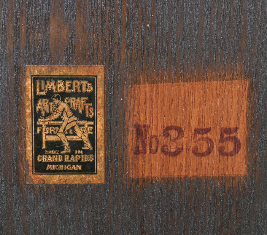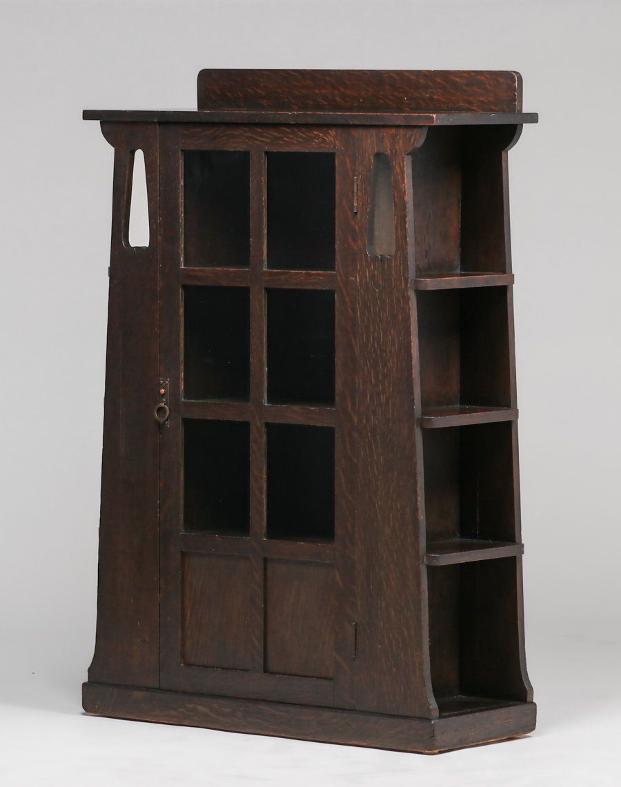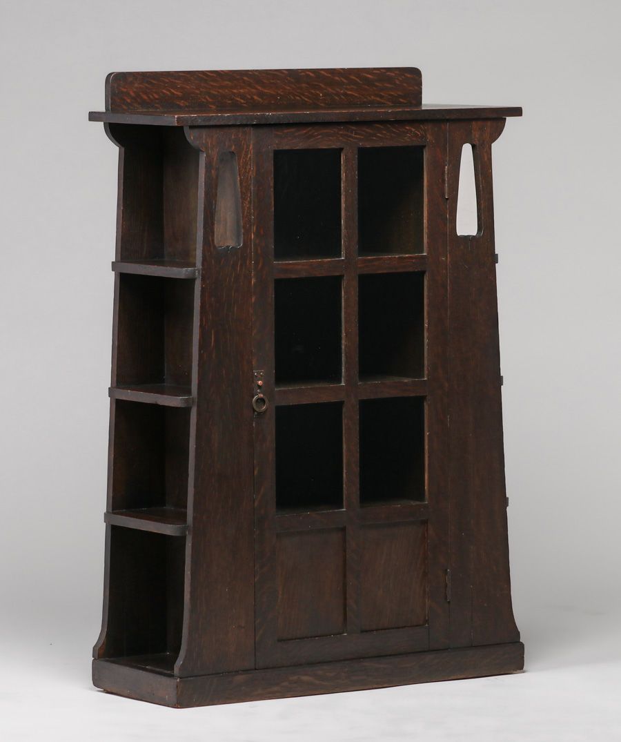 Early Limbert #355 One-Door Cutout Bookcase c1905. Signed with early paper label. Excellent original finish. 33″w x 48″h x 12″d SOLD