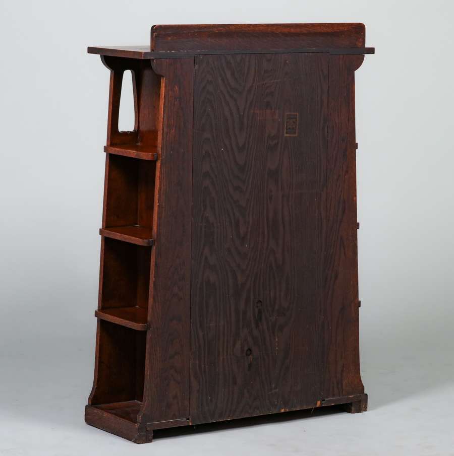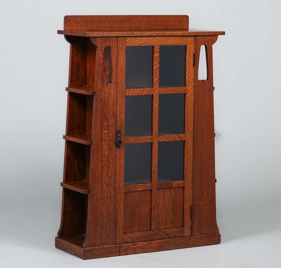 Early Limbert #355 One-Door Cutout Bookcase c1905. Signed with early paper label. Excellent original finish. 33"w x 48"h x 12"d SOLD
