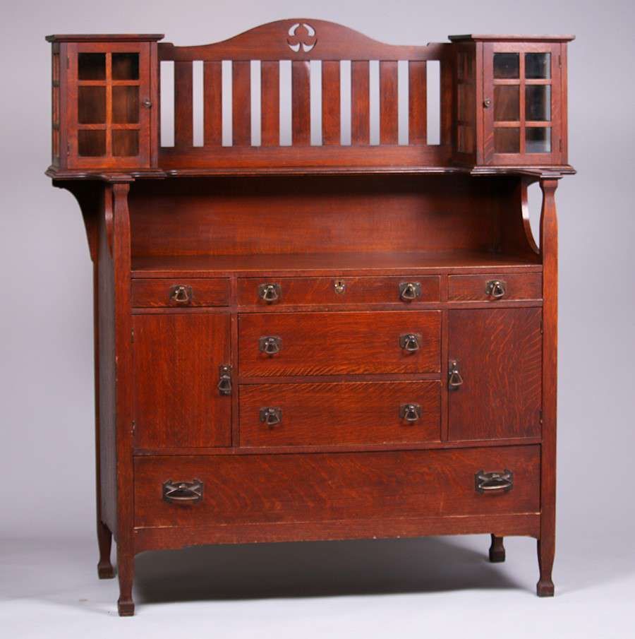 Early Limbert Cutout Hutch. Excellent original finish. Signed with partial remaining paper label. 61"w x 23"d x 66"h SOLD
