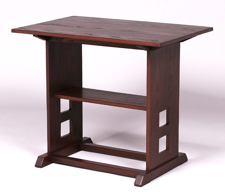 Early Limbert cutout trestle table made of chestnut c192-1905. Signed with paper label. Very nicely refinished. 36"w x 24"d x 30"h SOLD