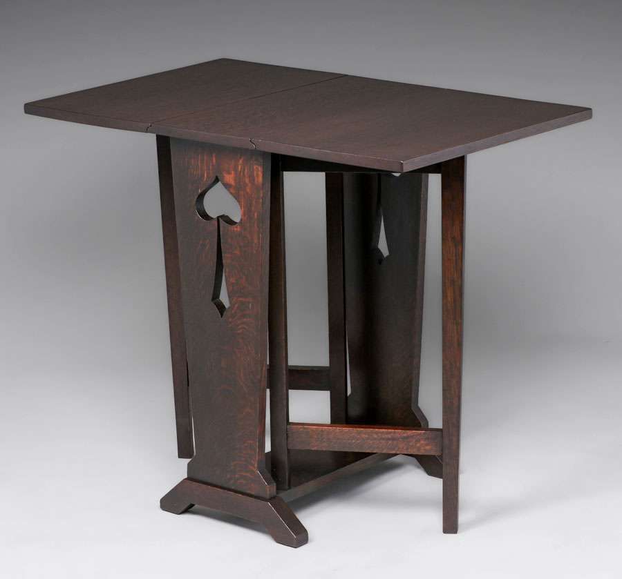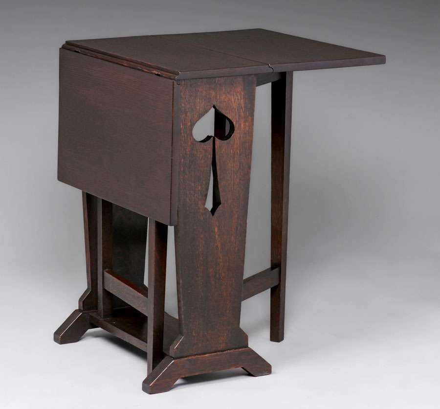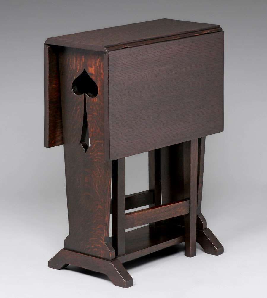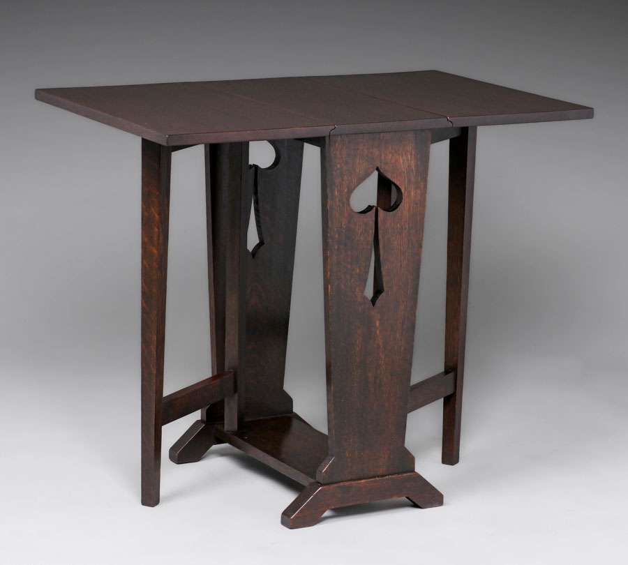 Early Limbert Spade Cutout Dropleaf Table c1905. Unsigned. Top refinished perfectly to match original finish base. 22"w x 30"h x 10.75"w (folded) x 35.75"w fully open SOLD