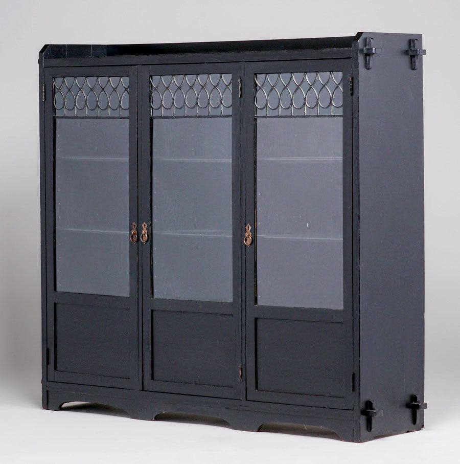 Early Limbert Three-Door Leaded Glass Bookcase c1902-1905. Unsigned. Excellent original black finish. 54"h x 64"w (with tenons) x 14"d SOLD