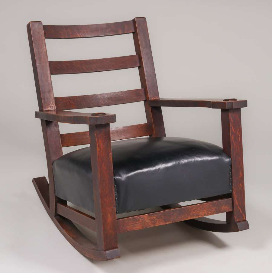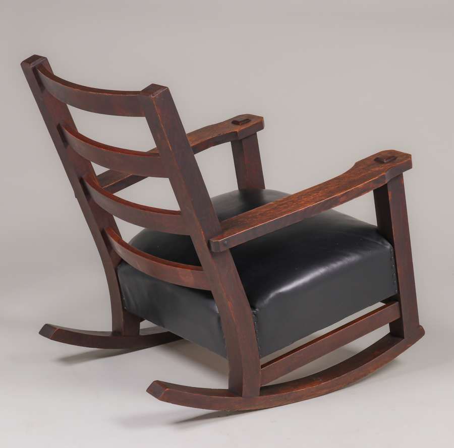 Large Early Limbert Rocker c1905. Signed with paper label. 37.5”h x 30”w x 35”d $2800