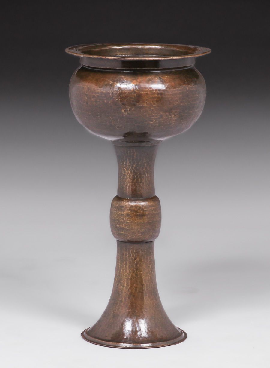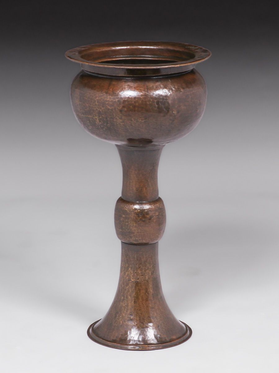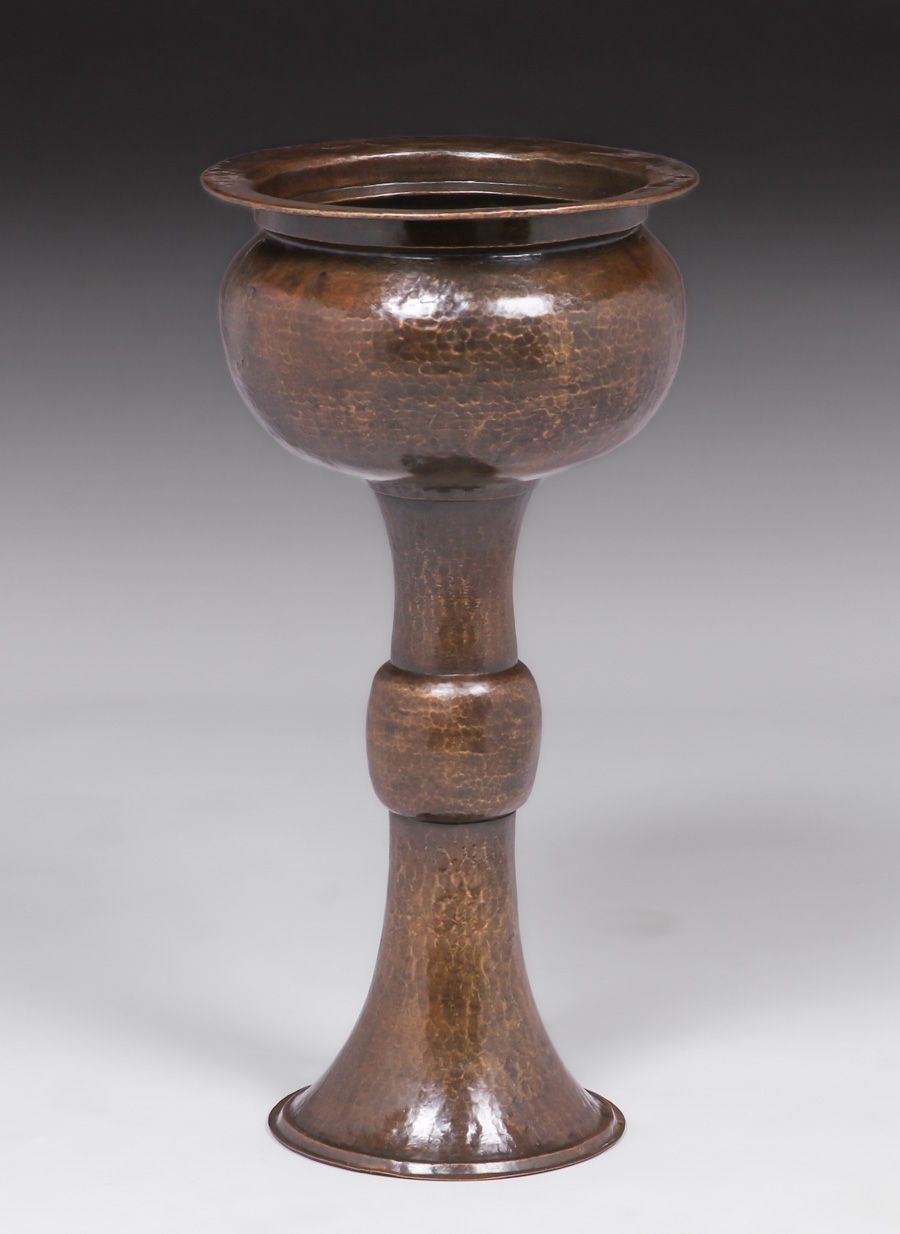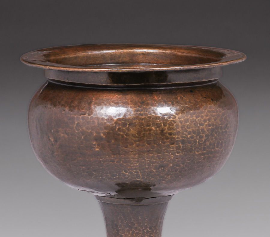Large Limbert Hammered Brass Standing Jardiniere c1910. Unsigned. Excellent new patina. 32"h x 15.75"d SOLD