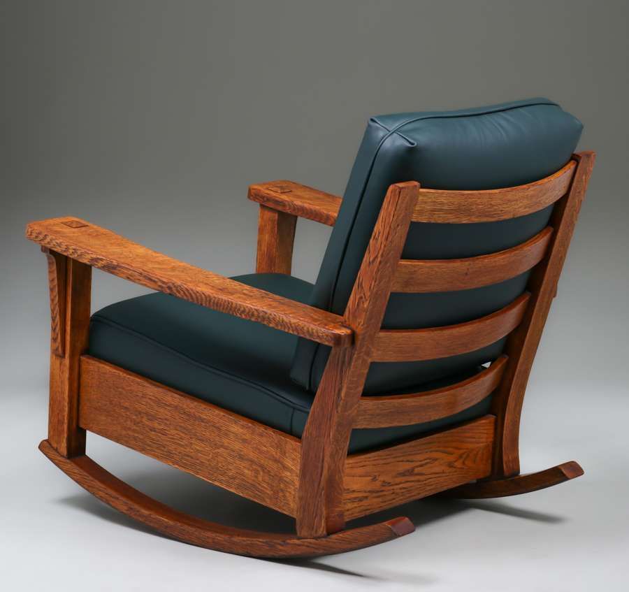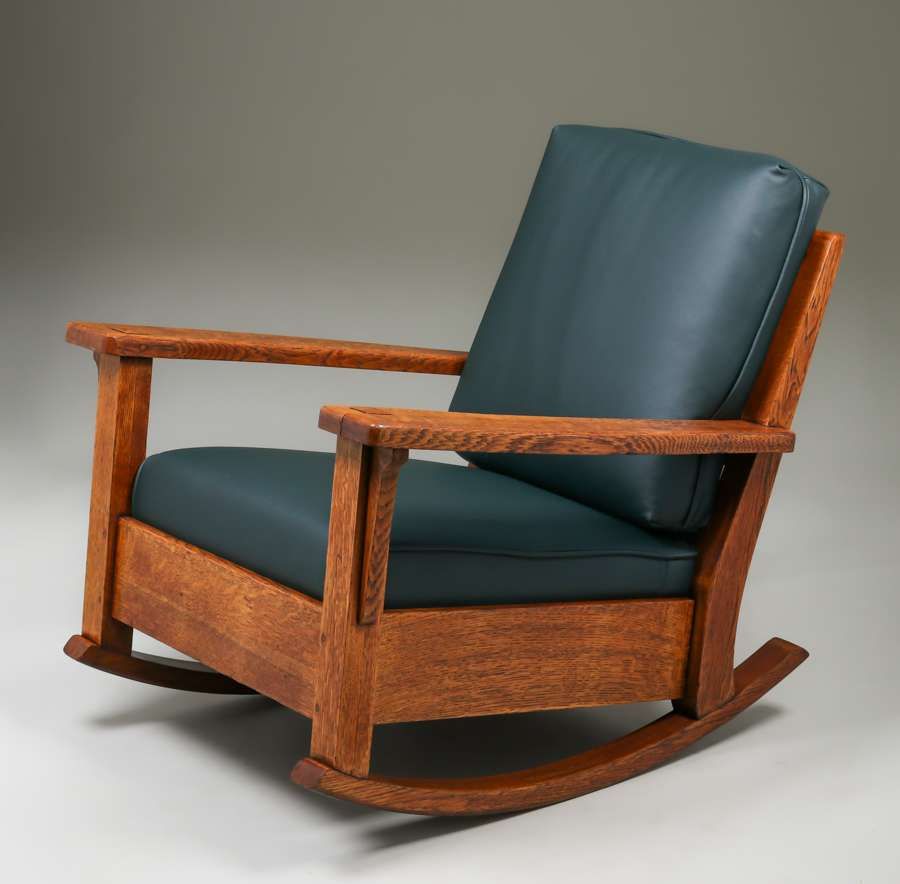 Large Limbert Long Arm Rocker c1910. Signed. Very nicely refinished. 32.5″h x 31.5″w x 38″d SOLD