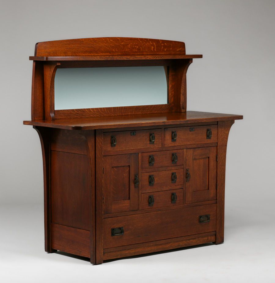 Limbert #1443 Six-Drawer Long Corbel Sideboard c1910. Signed with branded mark. Very nicely refinished. 60″w x 58″h x 23″d