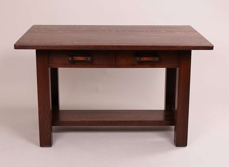 Limbert 2-Drawer Library Table with 5 Slats on each Side. Signed. Refinished. 50"w x 35"d x 29"h SOLD