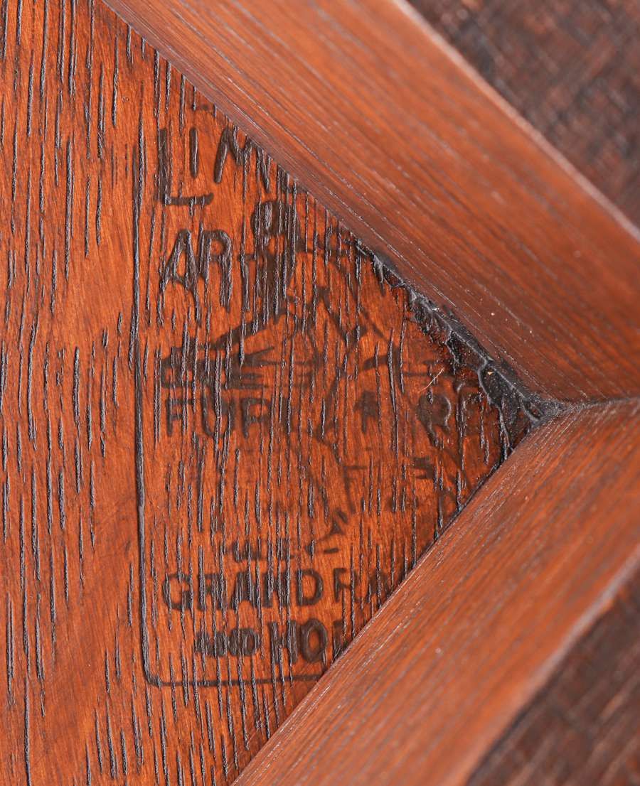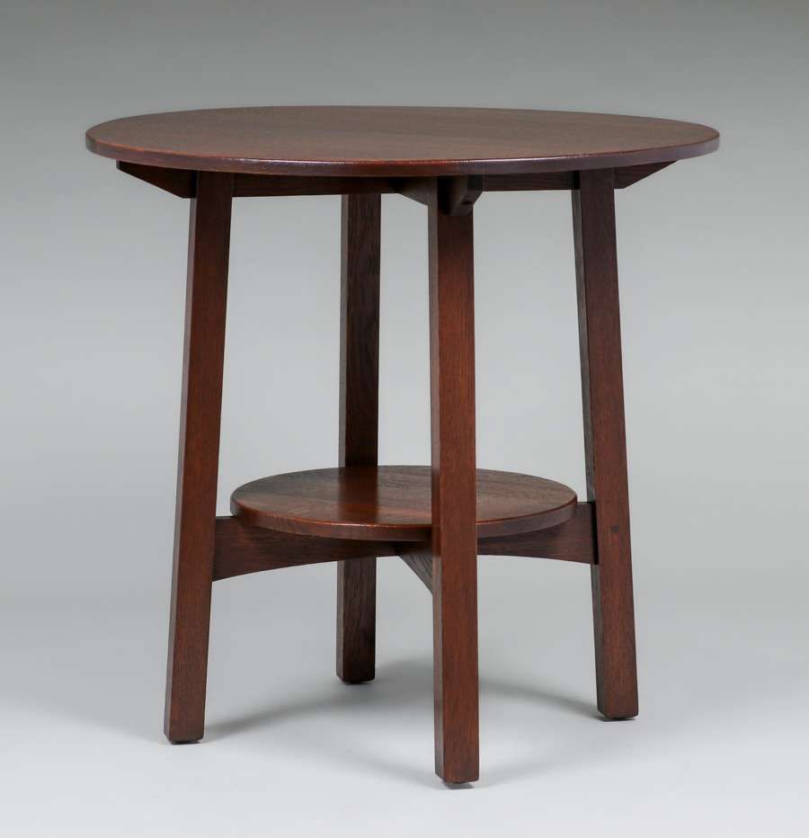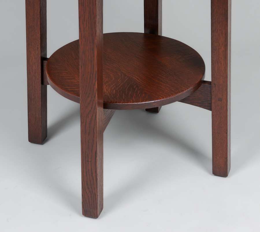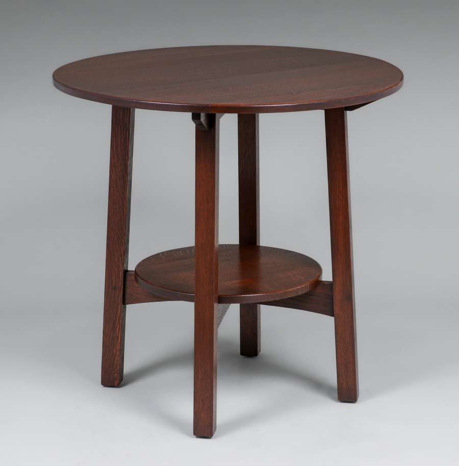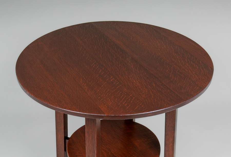 Limbert 30"d Lamp Table c1910. Signed with branded mark. Very nicely refinished. Very sturdy. 30"d x 29"h SOLD