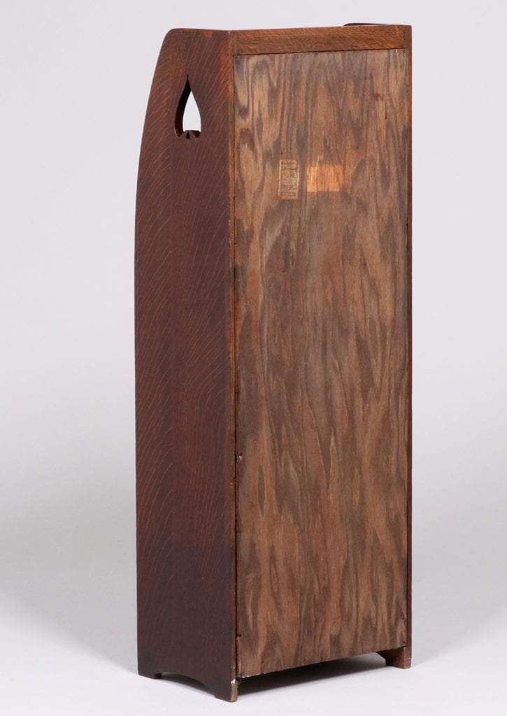 Rare Limbert #347 one-door spade cutout bookcase. Signed with early paper label c1905. Excellent original finish. 46.25"h x 16.5"w x 11.75"d SOLD