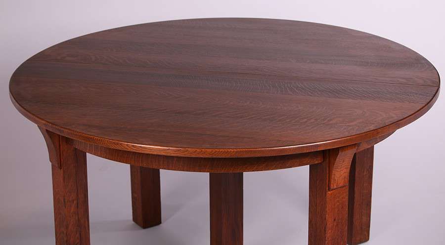 Limbert 5-Leg Dining Table with 6 Original Leaves. Signed. Refinished. 54" x 29"h. Measures 120" x 54" with the leaves. SOLD